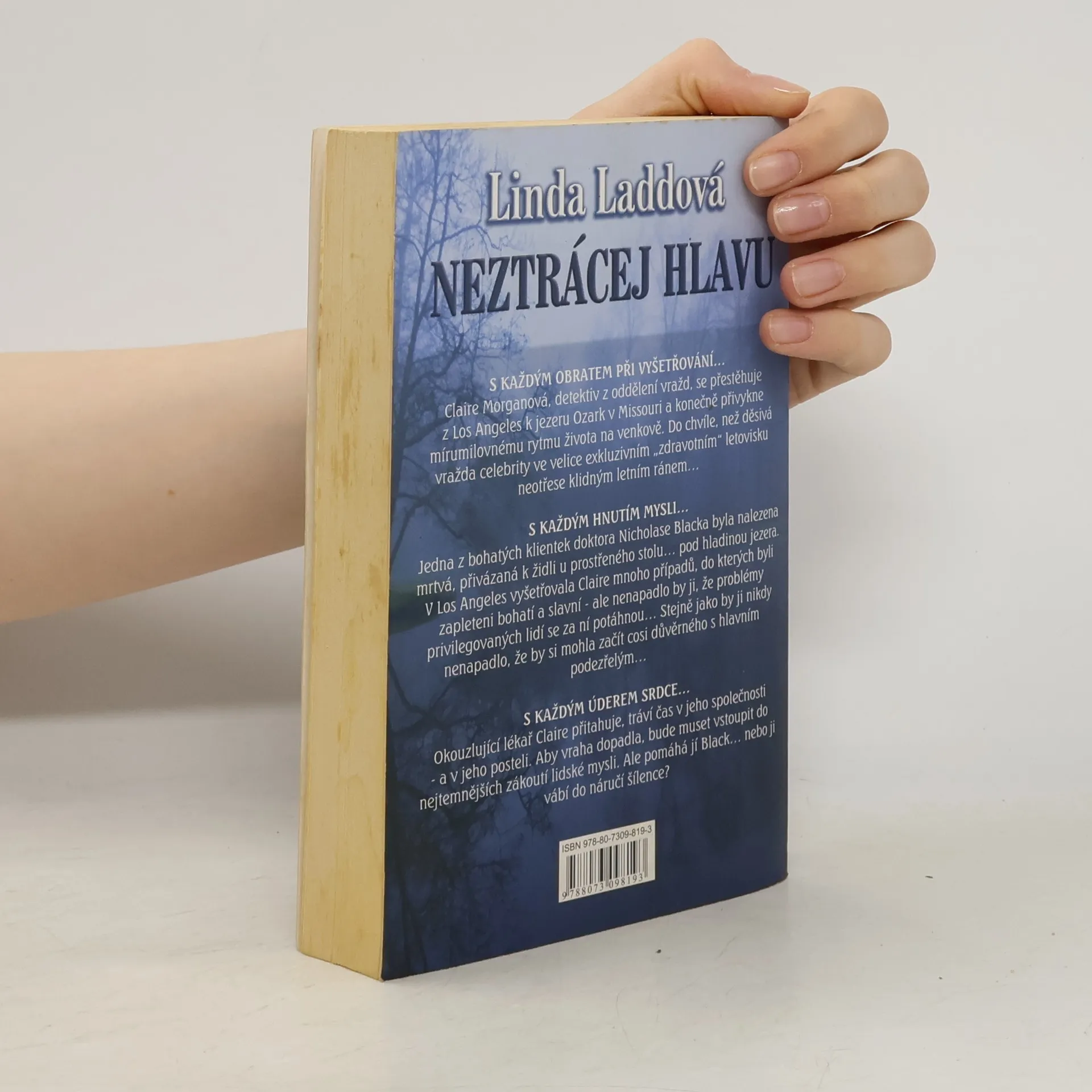 Claire Morganová, detektiv z oddělení vražd, se přestěhuje z Los Angeles k jezeru Ozark v Missouri a konečně přivykne klidnému rytmu života na venkově. Do chvíle, než děsivá vražda celebrity ve velice exkluzivním ''zdravotním'' letovisku neotřese klidným letním ránem... Jedna z bohatých klientek doktora Nicholase Blacka byla nalezena mrtvá, přivázaná k židli u prostřeného stolu... pod hladinou jezera. V Los Angeles vyšetřovala Claire mnoho případů, do kterých byli zapleteni bohatí a slavní...