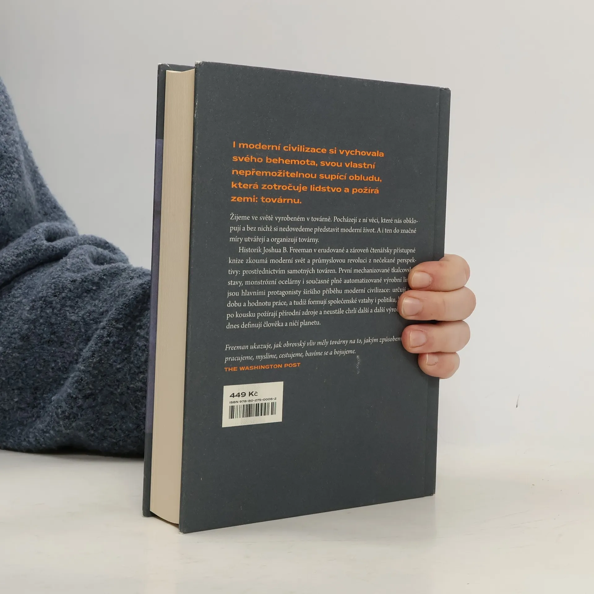 Žijeme ve světě vyrobeném v továrně. Pocházejí z ní věci, které nás obklopují a bez nichž si nedovedeme představit moderní život. A i ten do značné míry pochází z továrny… Historik Joshua B. Freeman v erudované a zároveň čtenářsky přístupné knize zkoumá moderní svět a jeho průmyslovou revoluci z nečekané perspektivy: prostřednictvím samotných továren. První mechanizované tkalcovské stavy, monstrózní ocelárny i současné plně automatizované výrobní linky jsou přitom hlavními protagonisty širšího příběhu moderní civilizace: určují podobu a hodnotu práce, a tudíž formují společenské vztahy i politiku, kousek po kousku požírají přírodní zdroje a neustále chrlí další a další věci — výrobky —, jež dnes definují člověka a ničí planetu.