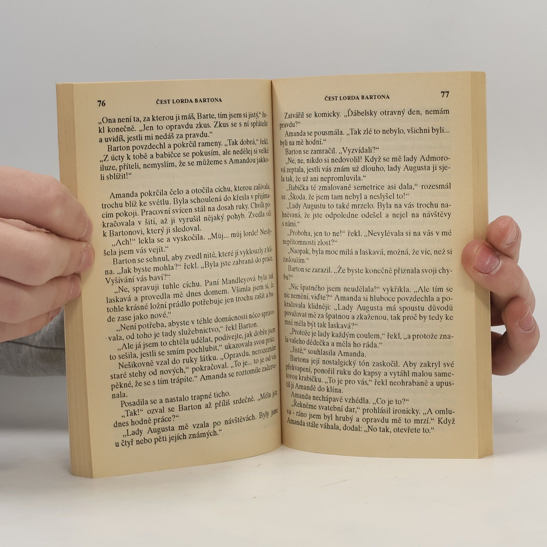 Je začátek devatenáctého století, doba, kdy čest mladé dámy může být velice snadno ohrožena: například je-li dívka nalezena bez doprovodu komorné na palubě lodi mezi divokými námořníky… Podaří se lordu Bartonovi zachránit pověst krásné Amandy Strattonové?