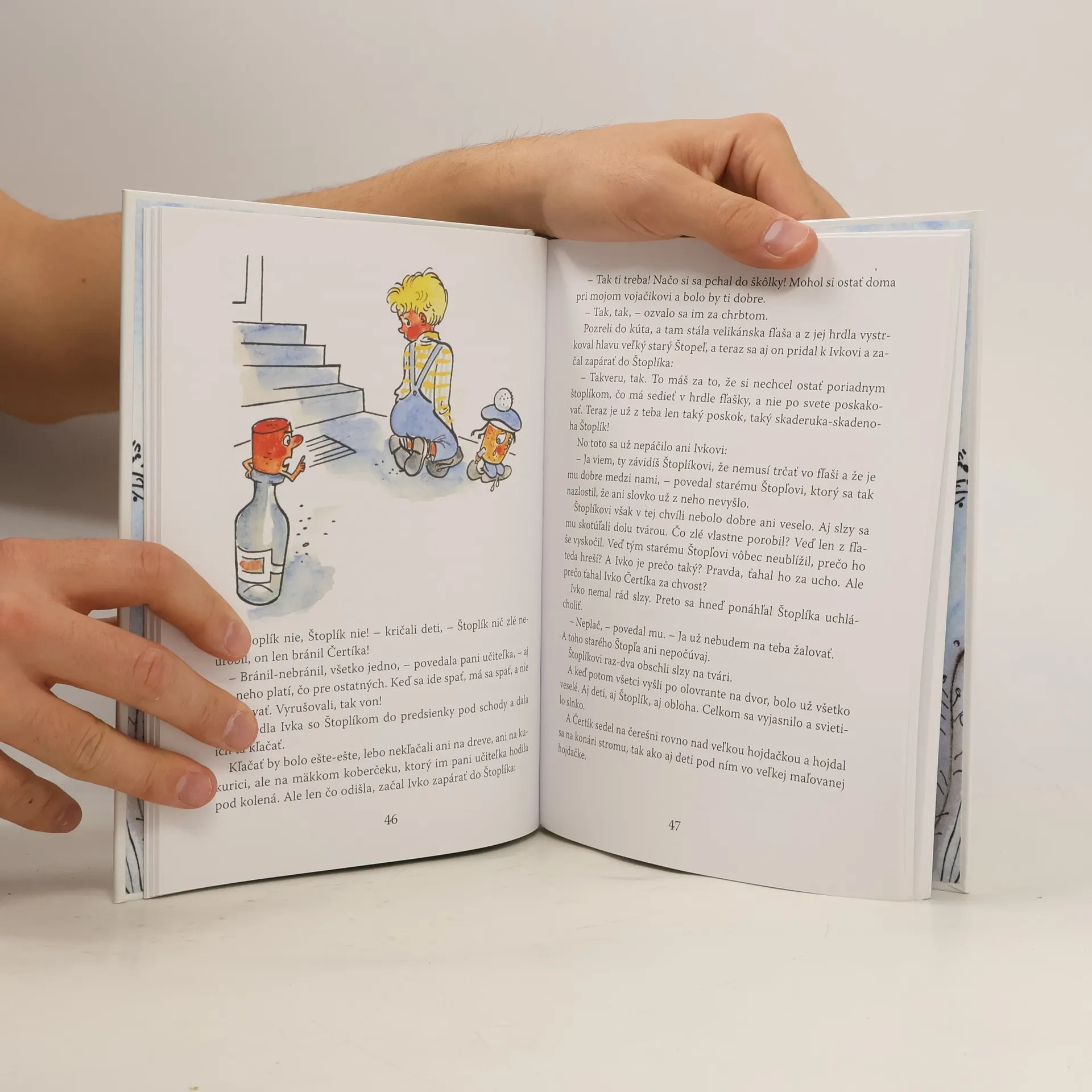 Prvý diel veselých príbehov korkového panáčika, ktorý svojou bezprostrednosťou očaril už celé generácie detí. Krok za krokom sa Štoplík zoznamuje nielen s deťmi, ale i so zvieratkami, kvetinkami, hračkami a zažíva také dobrodružstvá, až sa malému čitateľovi zatajuje dych. Štoplíka v námorníckej čiapke a modrých nohavičkách, kamaráta, ktorý sa zmestí aj do vrecka, si pritom poľahky môže urobiť každé dieťa samo. Stačí mať obyčajný korkový štoplík a farebný papier.