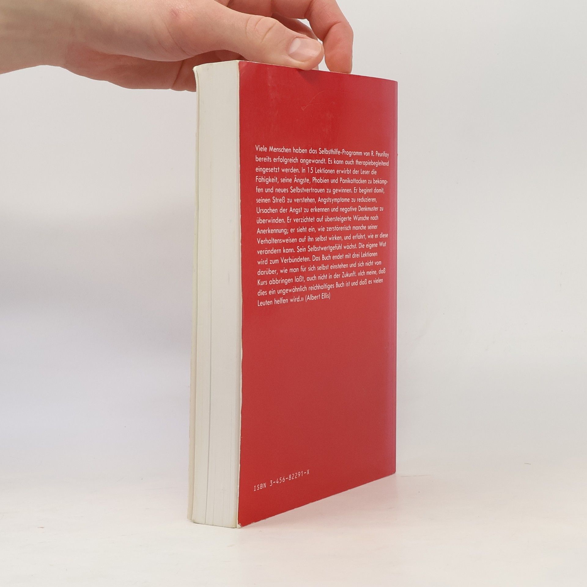 Die Leser*innen erwerben in 15 Lektionen die Fähigkeit, ihre Ängste, Phobien und Panikattacken zu bekämpfen und neues Selbstvertrauen zu gewinnen. Sie beginnen damit, ihren Stress zu verstehen, Angstsymptome zu reduzieren, Ursachen der Angst zu erkennen und negative Denkmuster zu überwinden. Sie verzichten auf übersteigerte Wünsche nach Anerkennung; sie sehen ein, wie zerstörerisch manche ihrer Verhaltensweisen auf sie selbst wirken, und erfahren, wie sie diese verändern können. Ihr Selbstwertgefühl wächst. Die eigene Wut wird zum Verbündeten. Das Buch endet mit drei Lektionen darüber, wie man für sich selber einstehen kann und sich nicht vom Kurs abbringen lässt, auch nicht in der Zukunft. Viele Menschen haben das Selbsthilfe-Programm von Reneau Peurifoy bereits erfolgreich angewandt. Es kann auch therapiebegleitend eingesetzt werden. «Ich meine, dass dies ein ungewöhnlich reichhaltiges Buch ist und dass es vielen Leuten helfen wird.» (Albert Ellis)