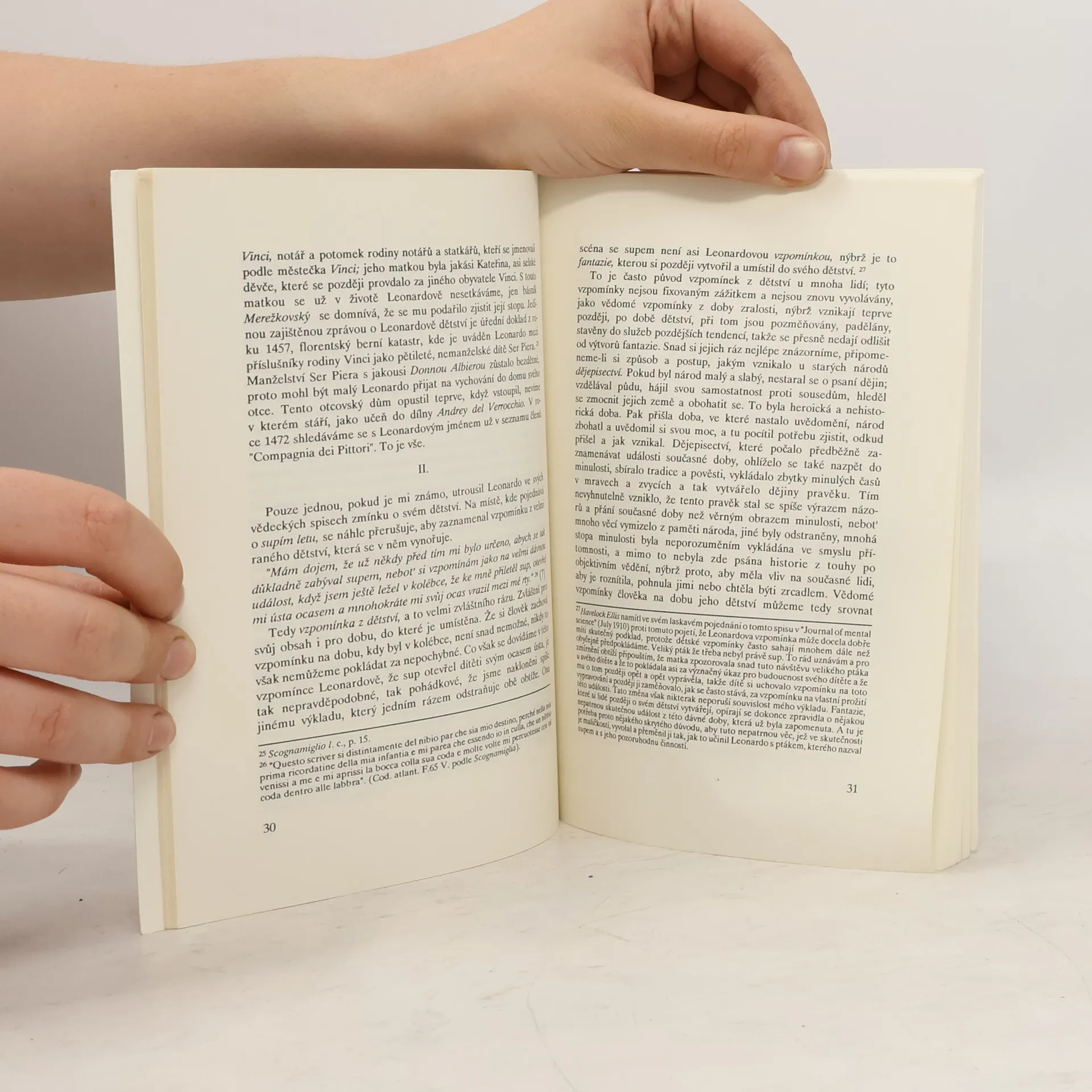 Chce-li pokus o životopis proniknout ke skutečnému porozumění duševnímu životu svého hrdiny, nesmí se vyhýbat výkladu sexuální činnosti, pohlavní zvláštnosti toho, koho zkoumá, jak se to pohříchu děje ve většině životopisů buď z diskrétnosti nebo z nemístného studu. Co je v tom ohledu známo o Leonardovi, není mnoho, ale i v tom je mnoho důležitého.... celý text