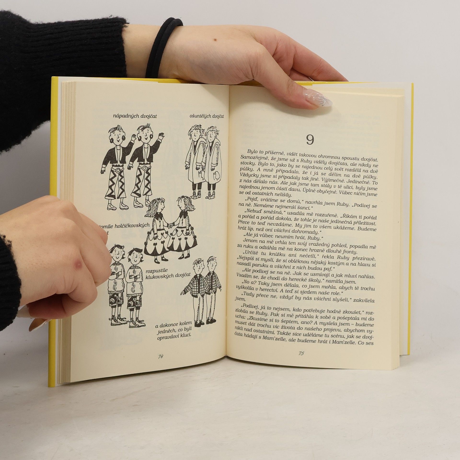 Ahoj, já jsem Ruby a tohle je Garnet. Je nám deset a jsme dvojčata. Máme babičku, tatínka a jezinku Jiřinku. Měli jsme i maminku, ale ta umřela. Místo ní je tu Jezinka. Lidi říkají, že jsme úplně stejné, ale nejsme. Jenom Jezinku máme obě stejně hrozně moc nerady. A taky chceme hrát v televizi. Teda, Ruby chce. Já ne. Jenže oni potřebují dvojčata...