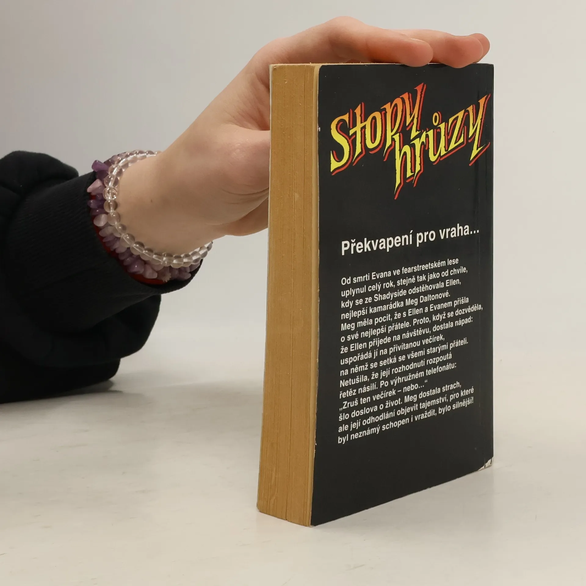 Stopy hrůzy 22, ze série Ulice strachu. Od smrti Evana ve fearstreetském lese uplynul celý rok, stejně jako tak od chvíle, kdy se ze Shadyside odstěhovala Ellen, nejlepší kamarádka Meg Daltonové. Meg měla pocit, že s Ellen a Evanem přišla o své nejlepší přátele. Proto, když se dozvěděla, že Ellen přijede na návštěvu, dostala nápad: uspořádá jí na přivítanou večírek, na němž, se setká se všemi starými přáteli. Netušila, že její rozhodnutí rozpoutá řetěz násilí. Po výhružném telefonátu: „Zruš ten večírek – nebo…“ šlo doslova o život. Meg dostala strach, ale její odhodlání objevit tajemství, pro které byl neznámý schopen i vraždit, bylo silnější!