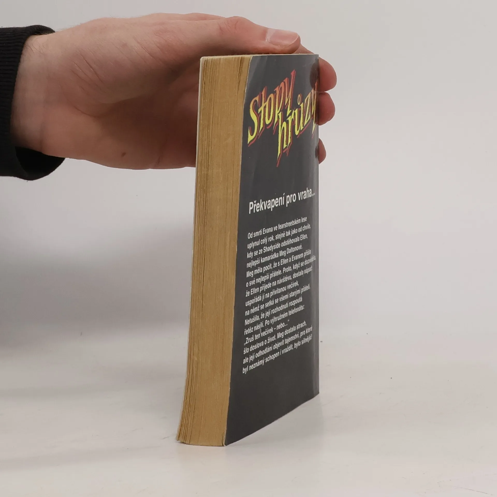 Stopy hrůzy 22, ze série Ulice strachu. Od smrti Evana ve fearstreetském lese uplynul celý rok, stejně jako tak od chvíle, kdy se ze Shadyside odstěhovala Ellen, nejlepší kamarádka Meg Daltonové. Meg měla pocit, že s Ellen a Evanem přišla o své nejlepší přátele. Proto, když se dozvěděla, že Ellen přijede na návštěvu, dostala nápad: uspořádá jí na přivítanou večírek, na němž, se setká se všemi starými přáteli. Netušila, že její rozhodnutí rozpoutá řetěz násilí. Po výhružném telefonátu: „Zruš ten večírek – nebo…“ šlo doslova o život. Meg dostala strach, ale její odhodlání objevit tajemství, pro které byl neznámý schopen i vraždit, bylo silnější!