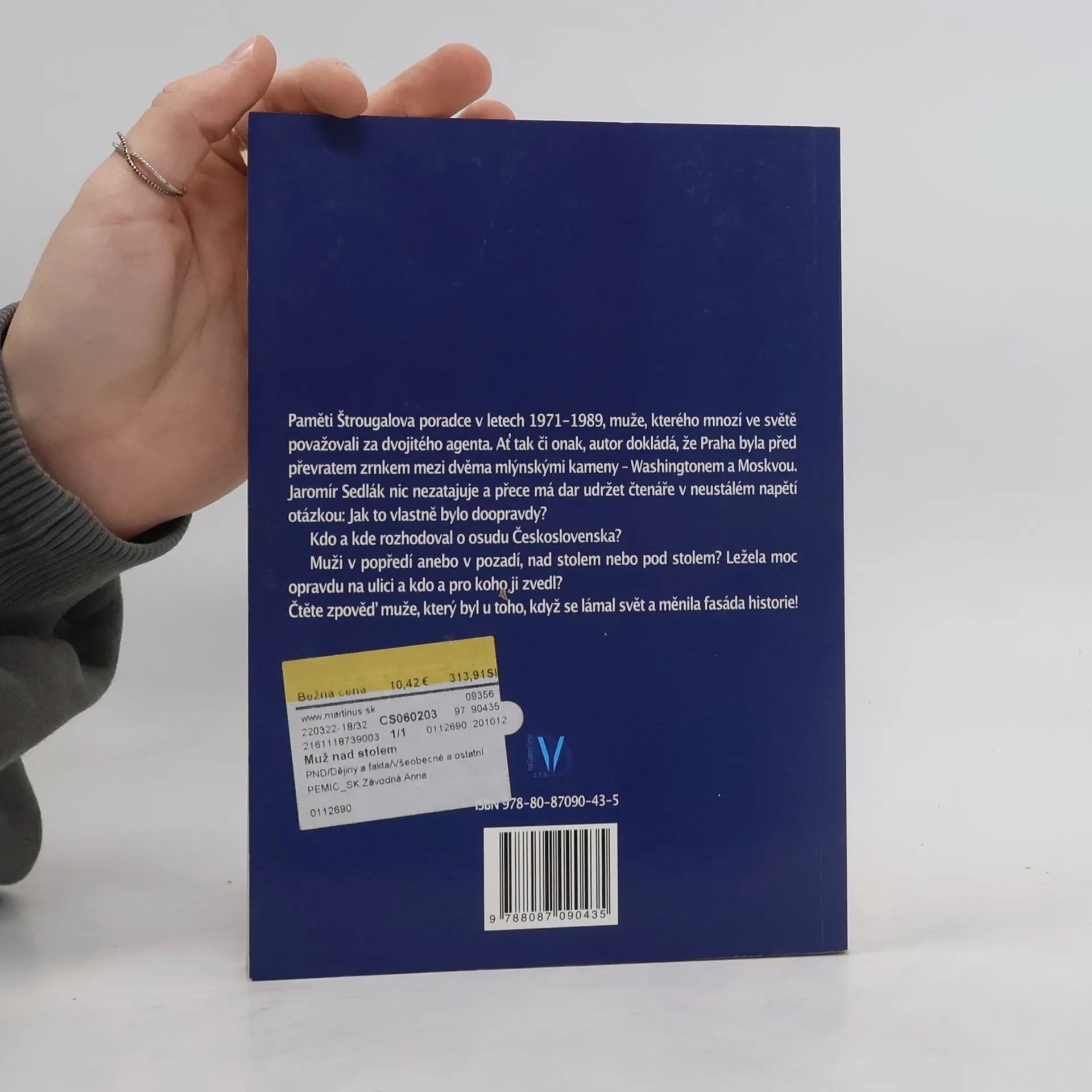 Paměti Štrougalova poradce v letech 1971 1989, muže, kterého mnozí ve světě považovali za dvojitého agenta. Ať tak či onak, autor dokládá, že Praha byla před převratem zrnkem mezi dvěma mlýnskými kameny Washingtonem a Moskvou. Jaromír Sedlák nic nezatajuje a přece má dar udržet čtenáře v neustálém napětí otázkou: Jak to vlastně bylo doopravdy? Kdo a kde rozhodoval o osudu Československa? Muži v popředí anebo v pozadí, nad stolem nebo pod stolem? Ležela moc opravdu na ulici a kdo a pro koho ji zvedl? Čtěte zpověď muže, který byl u toho, když se lámal svět a měnila fasáda historie!