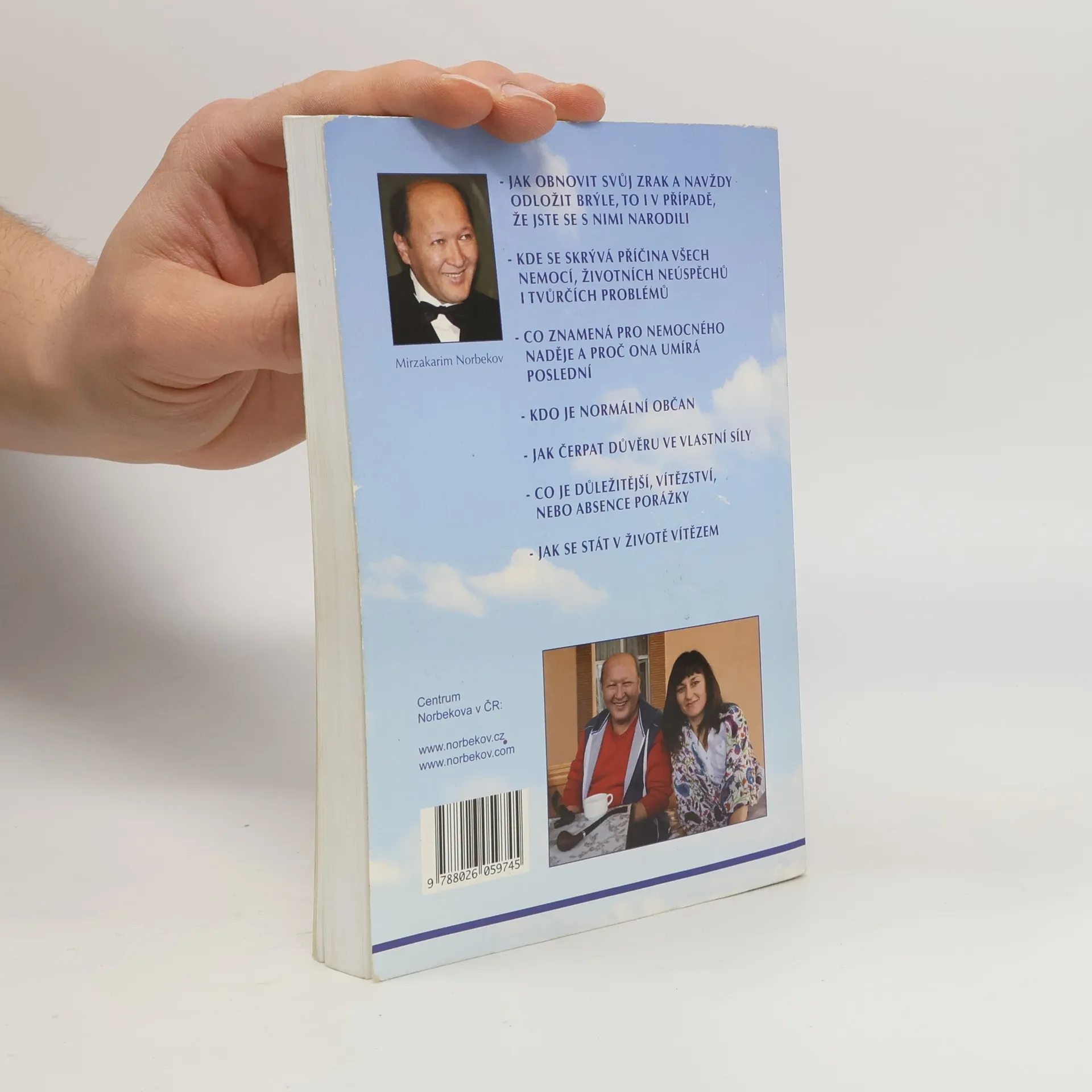 Tato kniha je unikátní. Nejedná se pouze o příručku zrychlené výuky obnovení zraku, není to jen filozofický traktát pro chronicky nemocného smolaře, je to návod k činnosti. Před vámi se otevírá metoda oceněná Mezinárodní asociací nezávislých expertů, jako nejefektivnější ze známých ozdravných metod. Je velice těžké tuto knihu někam zařadit, protože ekvivalentní žánr ještě neexistuje. Autor knihy Mirzakarim Norbekov je silná a zářivá osobnost. Je to symbol světla, dobra, lásky, jdoucí těžkou cestou pomocníka – vedoucího za sebou všechny, kteří ještě mají živou duši, všechny, kteří pociťují obrovský vnitřní tah k sebepoznání. Můžeme garantovat, že tato kniha nenechá ani jednoho člověka lhostejným! U někoho vyvolá nelibost a agresi a jinému, tato neobyčejná forma, pomůže najít sama sebe, svoji vnitřní pravdu. Jedním slovem, držíte v rukou knihu – test k naučení schopnosti číst mezi řádky, vidět očima srdce a poznávat hlubokou podstatu věcí. Srdečně vám přejeme úspěšné výsledky při testování.