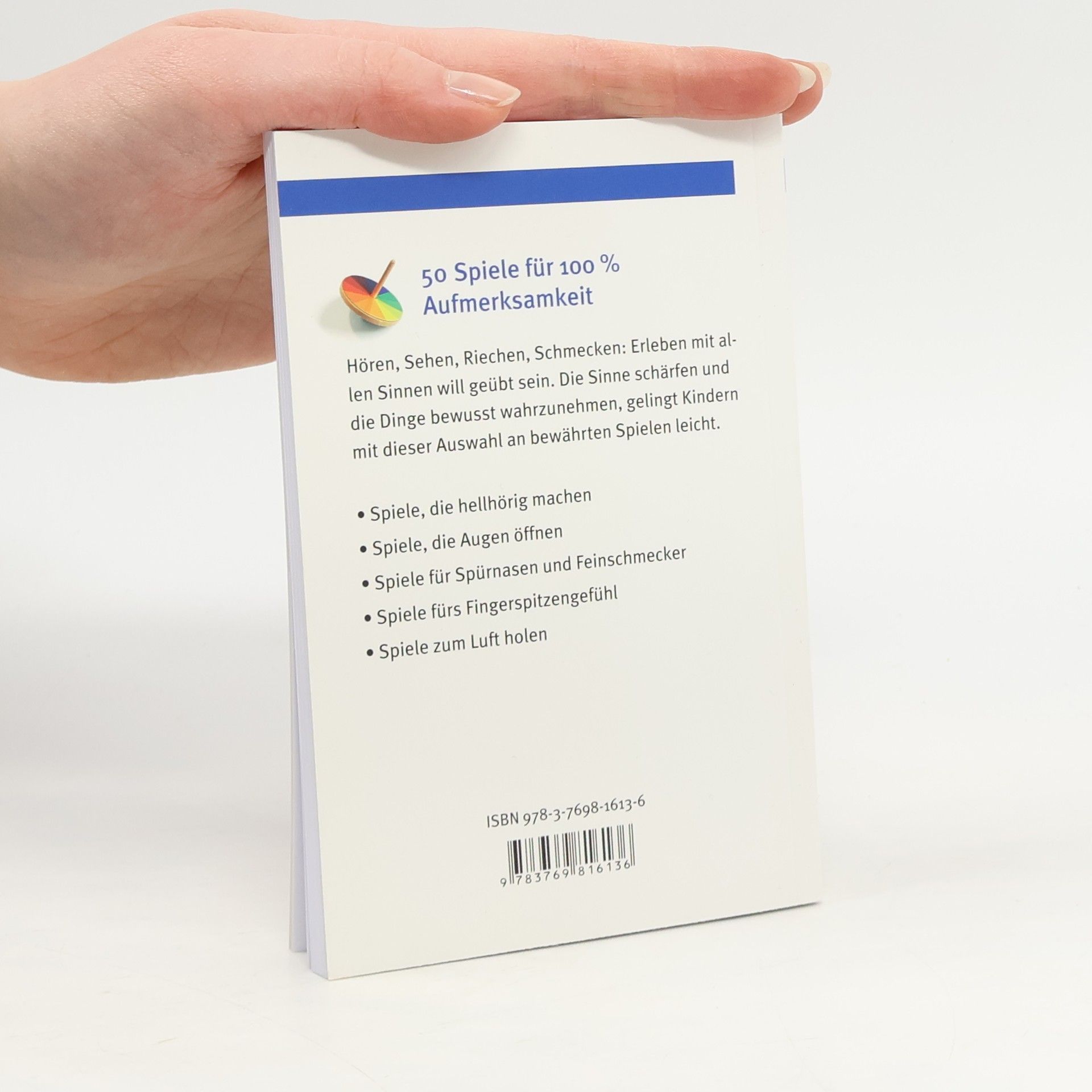 Diese preiswerte von Andrea Erkert verfasste Sammlung mit den 50 besten Wahrnehmungsspielen bietet eine vielfältige Sinneskost zur Wahrnehmungs- und Sinnesförderung. Mit dabei: Klassiker wie der Wäschesack zur Ertasten von Gegenständen, der Tischpusteparcours und viele neue Ideen wie die Zungenrechenmaschine, Tischgeräusche raten und die Sonne finden.