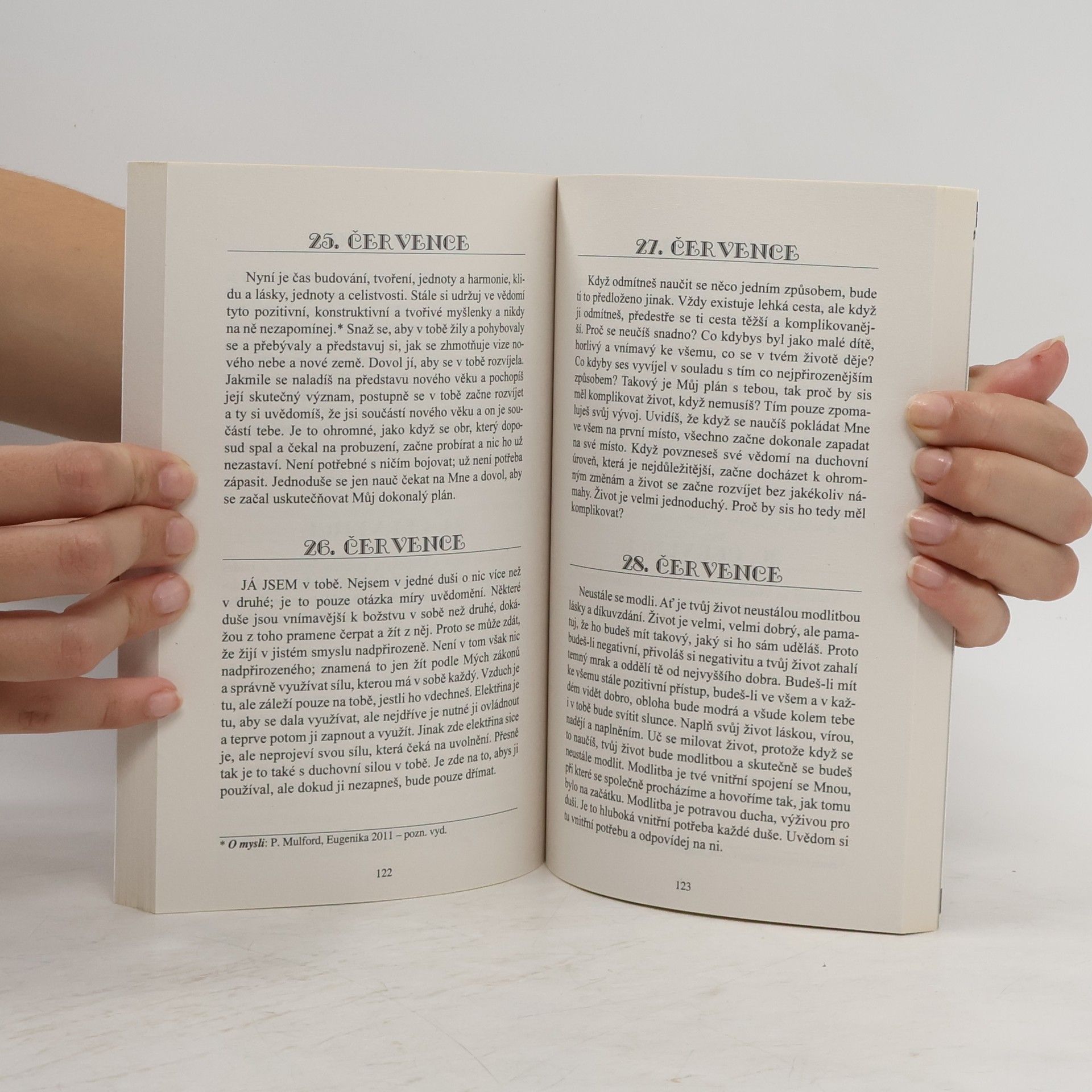 Eileen Caddyová byla zakladatelka slavné duchovní komunity Findhorn ve Skotsku. Tato pozoruhodná žena se v celém svém životě naučila řídit tichým vnitřním hlasem. Tato kniha shrnuje podstatu toho, čím žila a co se snažila zprostředkovat druhým. Je to jednoduché učení, ve kterém jako kdyby se nám promlouval sám Stvořitel. Krátké texty jednoduše, ale zároveň poeticky a meditativně přibližují duchovní hodnoty. Kniha je koncipována jako celoroční deník, který nabízí inspiraci, praktické rady a podněty pro každodenní duchovní růst.