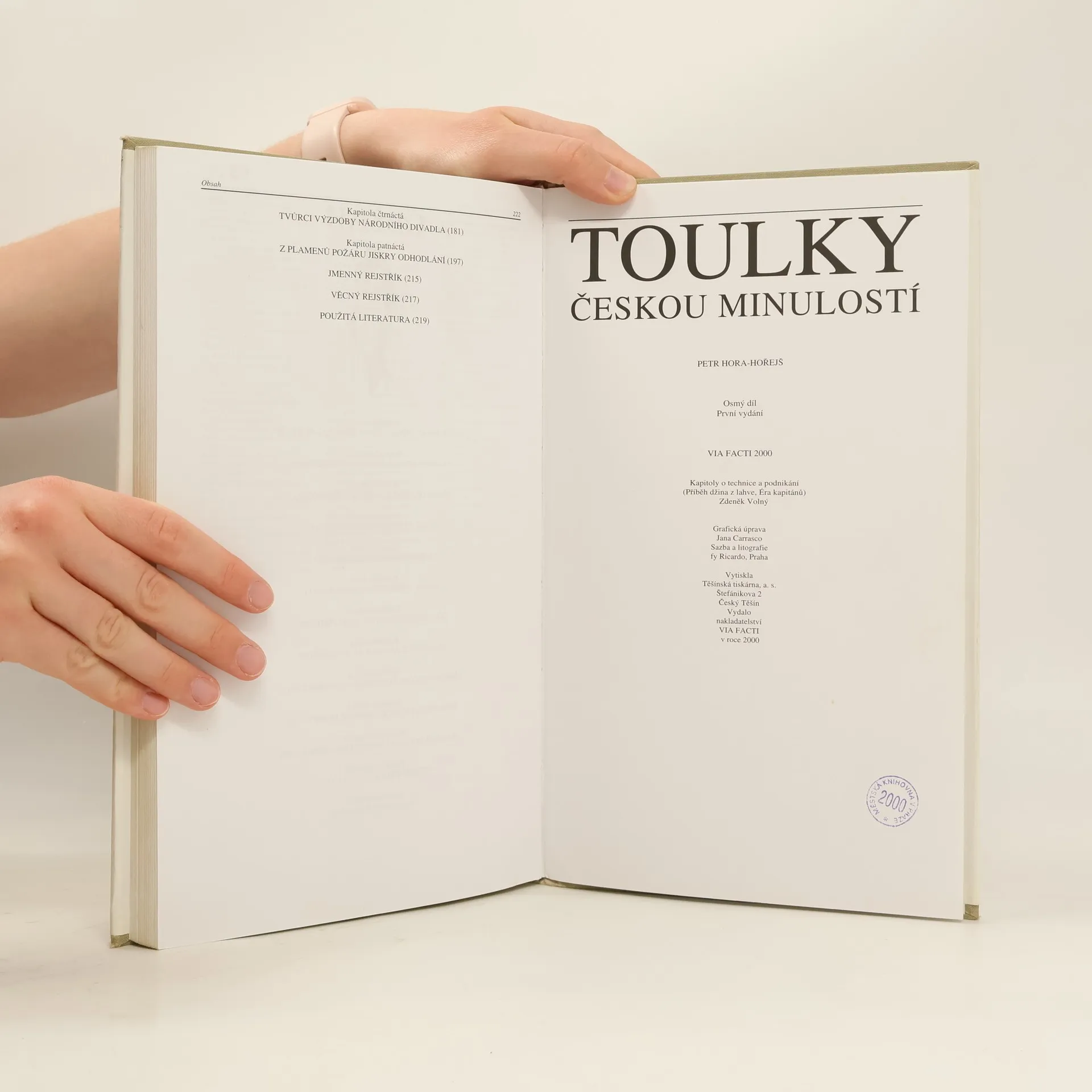 Osmý díl toulek českou minulostí je věnovaný slavným příběhům a osobnostem druhé poloviny 19. století. Pozn.: 1. Na čtvrté stránce u copyrightu je uvedeno chybné ISBN 80-238-5709-2. 2. Jako nakladatelství je u tohoto vydání pouze Via Facti, byť na přebalu je zobrazeno i logo Baronet. Pozn.: Kapitola 12. a 13. - Zdeněk Volný