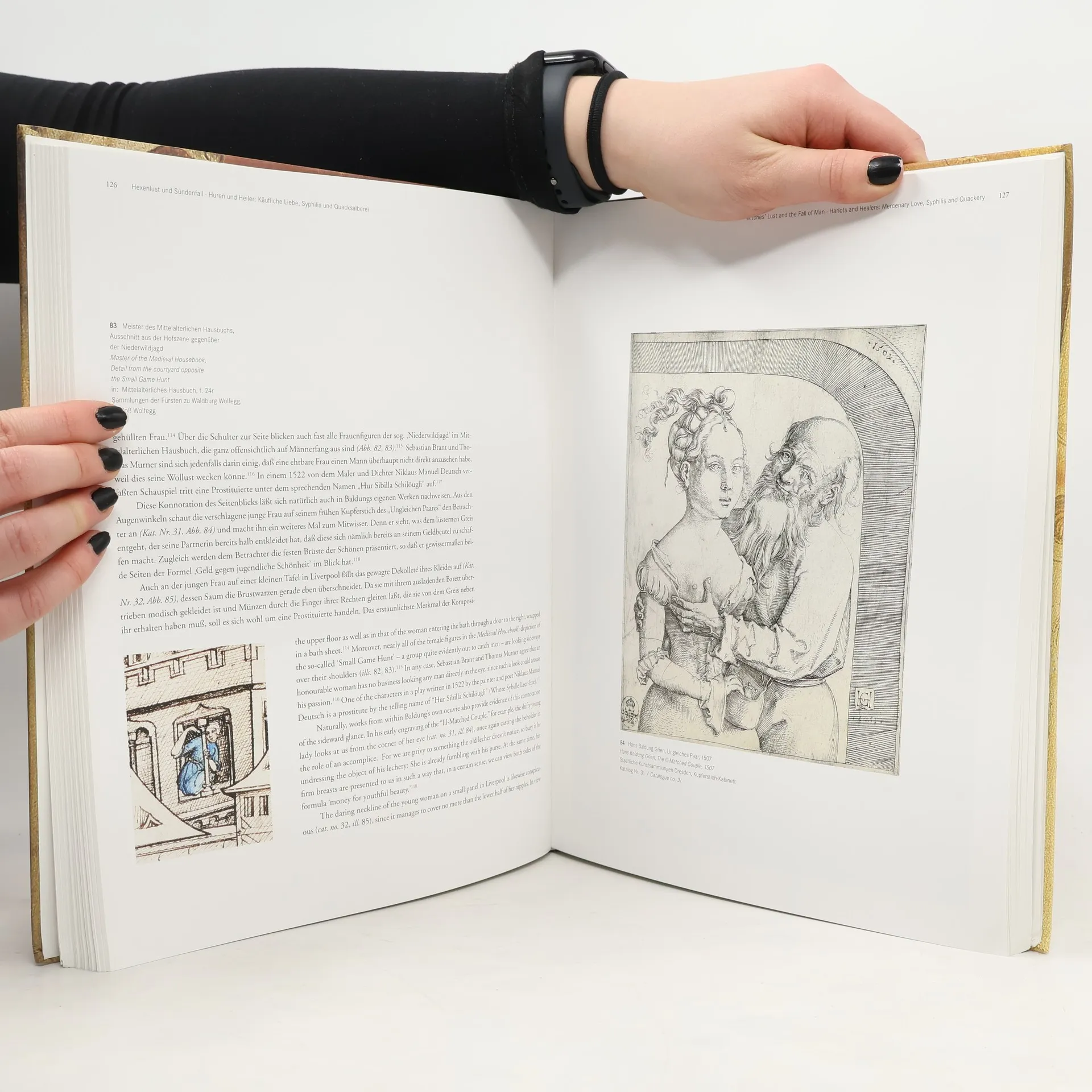 Dem phantastischen Treiben der Hexen hat Hans Baldung Grien eine ganze Reihe von Zeichnungen, aber nur ein einziges Gemälde gewidmet. Dabei handelt es sich um ein 1523 datiertes Bild, welches im Frankfurter Städel steht und den Mittelpunkt der Ausstellung bildet. Bei dem hochkarätigen Kunstkammerstück spekulierte der Maler nicht nur auf den wohligen Schauer, den Erscheinungen des Überirdischen hervorrufen; er forderte den gebildeten Betrachter seinerzeit gleichzeitig zu weitergehenden Reflexionen über die verschiedensten Themen heraus: über die erotische Ausstrahlung der Frau, die Liebe und ihre möglichen Folgen, die weibliche Schönheit und den Versuch, ihr Geheimnis im Maleratelier zu enträtseln. Ironisch kommentiert Baldung nicht nur die zeitgenössischen Ansichten zum Hexenwesen, sondern auch die kunsttheoretischen Ansichten seines Lehrmeisters Albrecht Dürer. Die Ausstellung präsentiert sämtliche Hexendarstellungen Hans Baldung Griens, delikate Hell-Dunkel-Zeichnungen auf getönten Papieren ebenso wie Holzschnitte, die zu den Inkunabeln des Farbdrucks gehören. Von hier wird der Bogen gespannt zu weiteren Tafelbildern Baldungs, die weibliche Nacktheit und voyeuristische Blicke elegant gegeneinander ausspielen und schließlich Liebe, Sünde und Tod zu einem geheimnisvollen Dreiklang bringen.
