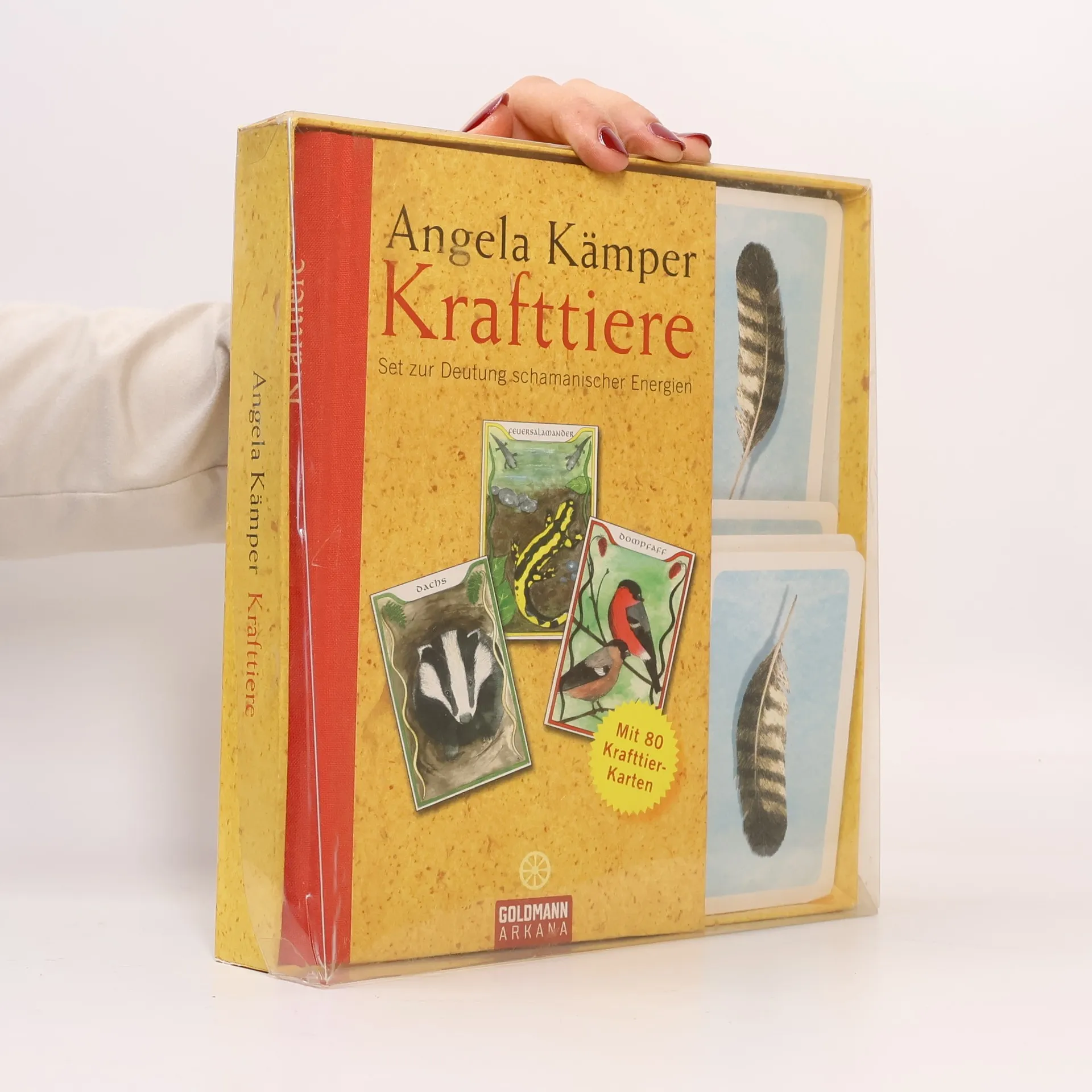 Das erste Werk, das schamanisches Wissen in Kartenform leicht zugänglich macht. Schon in grauer Vorzeit zogen Seher und Schamanen aus dem Erscheinen und den Bewegungen von Tieren Rückschlüsse auf das Menschenschicksal. Eine moderne Version dieses Wissens präsentiert Angela Kämper mit dem vorliegenden Set aus 80 Karten heimischer Tiere und dem Begleitbuch. Die speziell für dieses Projekt ebenso liebevoll wie authentisch gezeichneten Farb-Karten zeigen jeweils ein Tier unserer heimischen Fauna in typischer Pose. Im Begleitbuch werden die psychischen Qualitäten der Tiere bzw. deren Energiemuster von A wie Aal bis Z wie Zaunkönig besprochen. Hier erfahren wir, dass die innere Qualität des Aals mit Neid, die des Adlers mit spirituellem Bewusstsein, die des Hechts mit Macht und die der Wildkatze mit Eigenwilligkeit zu tun hat. Anhand der 80 Karten entfaltet sich das vollständige Spektrum psychischer Qualitäten und Zustände. Vergleichbar dem Tarot werden verschiedene Legesysteme beschrieben, die Hilfe bieten bei der Analyse von Situationen, bei schwierigen Entscheidungen und zur Selbsterkenntnis.