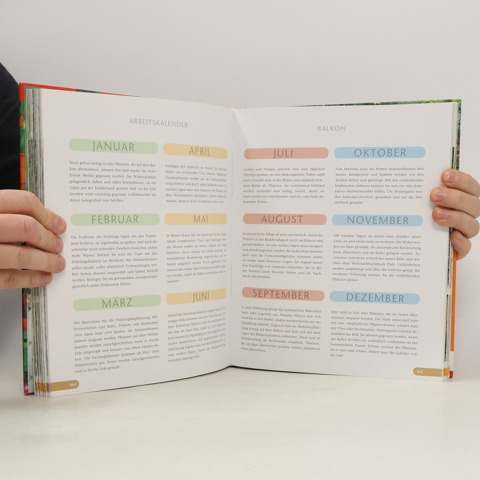Für den einen sind es zusätzliche Zimmer im Freien, für den anderen Oasen der Erholung und kreativen Beschäftigung. Der Band bietet eine Fülle von Anregungen für die Gestaltung des „Traum-Zimmers im Freien“ zu allen Jahreszeiten. Die Autoren zeigen, wie Balkon und Terrasse zu Wohlfühlräumen werden. Nach Jahreszeiten gegliedert, präsentieren sie zahlreiche Gestaltungsvorschläge, illustriert mit stimmungsvollen Fotos, die zum Träumen anregen. Die Ideen basieren auf Farben und bestimmten Themen: zarte Pflanzenkombinationen in Rosa und Weiß, das Goldgelb des Sommers, leuchtendes Rot, Blau und Violett sowie elegantes Grün und Silber bieten Inspiration für verschiedene Stilrichtungen. Egal, ob man im Duft schwelgen, im Rosengarten sitzen oder Gemüse und Kräuter ernten möchte, die Autoren zeigen, wie es geht. Auch schattige Balkone, Terrassen mit Miniteich oder Klettergärten im Topf werden berücksichtigt. Zu jedem Thema werden die besten Pflanzen in ausführlichen Porträts vorgestellt, mit Fotos und allen notwendigen Informationen. Ein umfassender Praxisteil gibt Einkaufstipps, informiert über Pflanzgefäße, Erde, Pflege und Pflanzenschutz. Ein Arbeitskalender und Bezugsquellen im Anhang ergänzen den Band. Egal, ob der eigene Balkon mediterran oder im Stil eines Bauerngartens gestaltet ist, die Ideen bieten eine verführerische Fülle für die Gestaltung des Sitzplatzes im Freien.