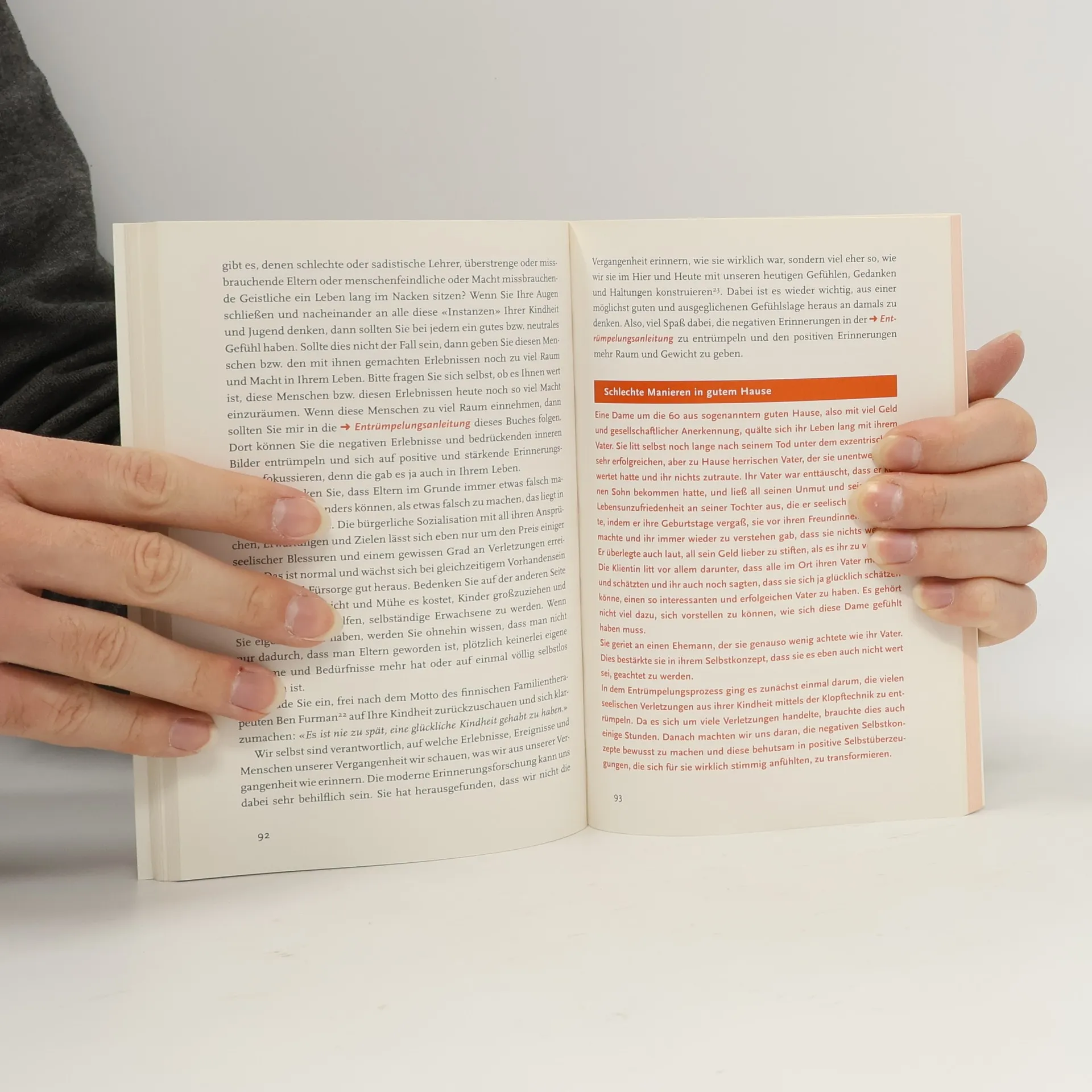 Die meisten von uns spüren mehr oder minder stark bestimmte Schwächen, Ängste, innere Blockaden und psychische Befindlichkeiten, die uns oft das Leben schwermachen. Dieses „Gerümpel“ aus dem Weg zu räumen und eigene Energien wieder frei fließen zu lassen gelingt mit diesem Buch. Mit den Klopftechniken der Energetischen Psychologie können Sie emotionale Belastungen wie Ängste und negative Gefühle reduzieren, eigene einschränkende Überzeugen hinterfragen, Beziehungen zu verschiedenen Menshcen richtig einschätzen und auf den richtigen Weg bringen, eigene Verhaltensschwierigkeiten lösen, „Selbstwerträuber“ identifizieren und Leistungen in vielen Bereichen befördern. In kurzer Zeit lassen sich belastende Zustände zuverlässig „entrümpeln“, und Sie werden überrascht sein, welche Energien plötzlich frei werden können und wie gut sich emotionales Wohlbefinden und Lebensfreude wiederherstellen lassen.