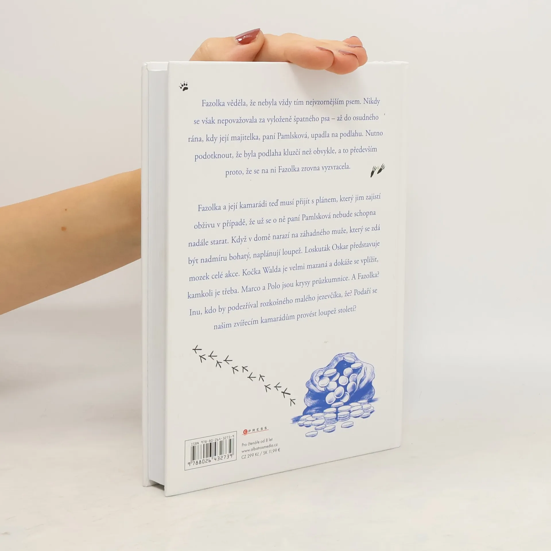 "Velká loupež a ještě větší legrace!" Fazolka věděla, že nebyla vždy tím nejvzornějším psem. Nikdy se však nepovažovala za vyloženě špatného psa – až do osudného rána, kdy její majitelka, paní Pamlsková, upadla na podlahu. Nutno podotknout, že byla podlaha kluzčí než obvykle, a to především proto, že se na ni Fazolka zrovna vyzvracela. Fazolka a její kamarádi teď musí přijít s plánem, který jim zajistí obživu v případě, že už se o ně paní Pamlsková nebude schopna nadále starat. Podaří se našim zvířecím kamarádům provést loupež století?