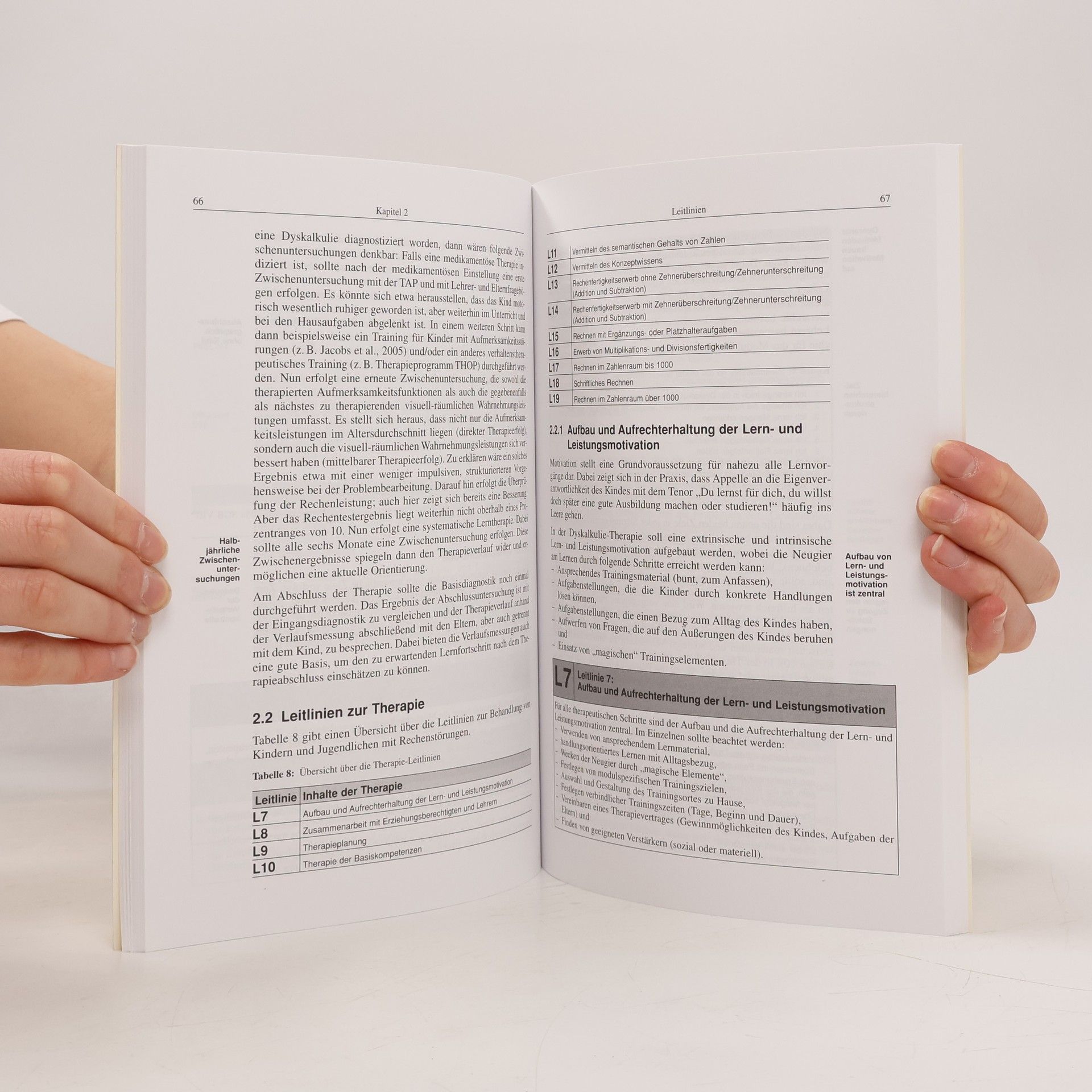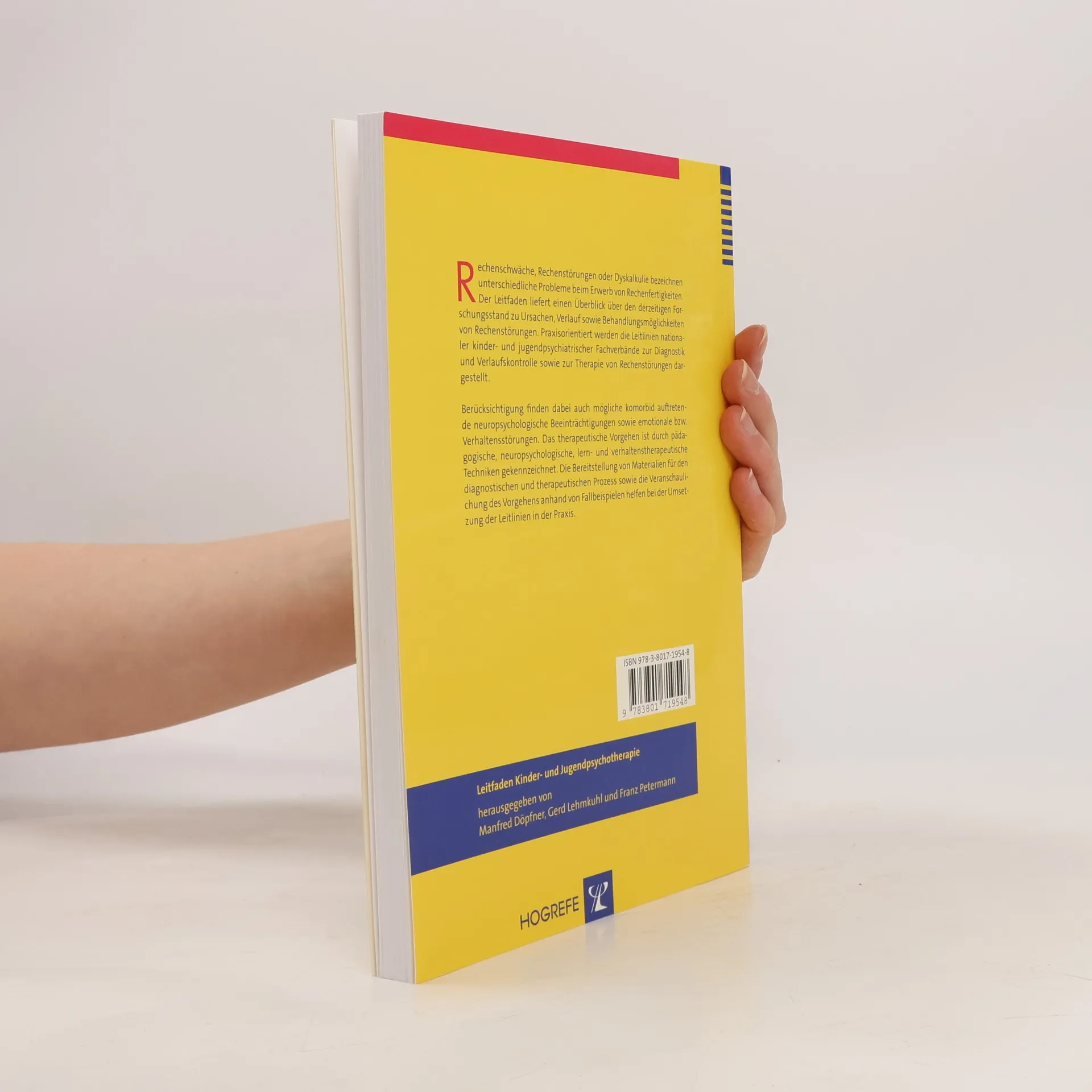Rechenschwäche, Rechenstörung oder Dyskalkulie bezeichnen unterschiedliche Probleme beim Erwerb von Rechenfertigkeiten. Der Leitfaden liefert einen Überblick über den derzeitigen Forschungsstand zu Ursachen, Verlauf sowie Behandlungsmöglichkeiten von Rechenstörungen. Praxisorientiert werden die Leitlinien nationaler kinder- und jugendpsychiatrischer Fachverbände zur Diagnostik und Verlaufskontrolle sowie zur Therapie von Rechenstörungen dargestellt. Berücksichtigung finden dabei auch mögliche komorbid auftretende neuropsychologische Beeinträchtigungen sowie emotionale bzw. Verhaltensstörungen. Das therapeutische Vorgehen ist durch pädagogische, neuropsychologische, lern- und verhaltenstherapeutische Techniken gekennzeichnet. Die Bereitstellung von Materialien für den diagnostischen und therapeutischen Prozess sowie die Veranschaulichung des Vorgehens anhand von Fallbeispielen helfen bei der Umsetzung der Leitlinien in der Praxis. Der Leitfaden bietet praxisorientierte Informationen zur Diagnostik und Therapie von Rechenstörungen. Dabei werden die Leitlinien nationaler kinder- und jugendpsychiatrischer Fachverbände sowie aktuelle Forschungsergebnisse referiert. Berücksichtigung finden auch mögliche komorbid auftretende neuropsychologische Beeinträchtigungen sowie emotionale bzw. Verhaltensstörungen. Das therapeutische Vorgehen ist durch pädagogische, neuropsychologische und verhaltenstherapeutische Techniken gekennzeichnet.