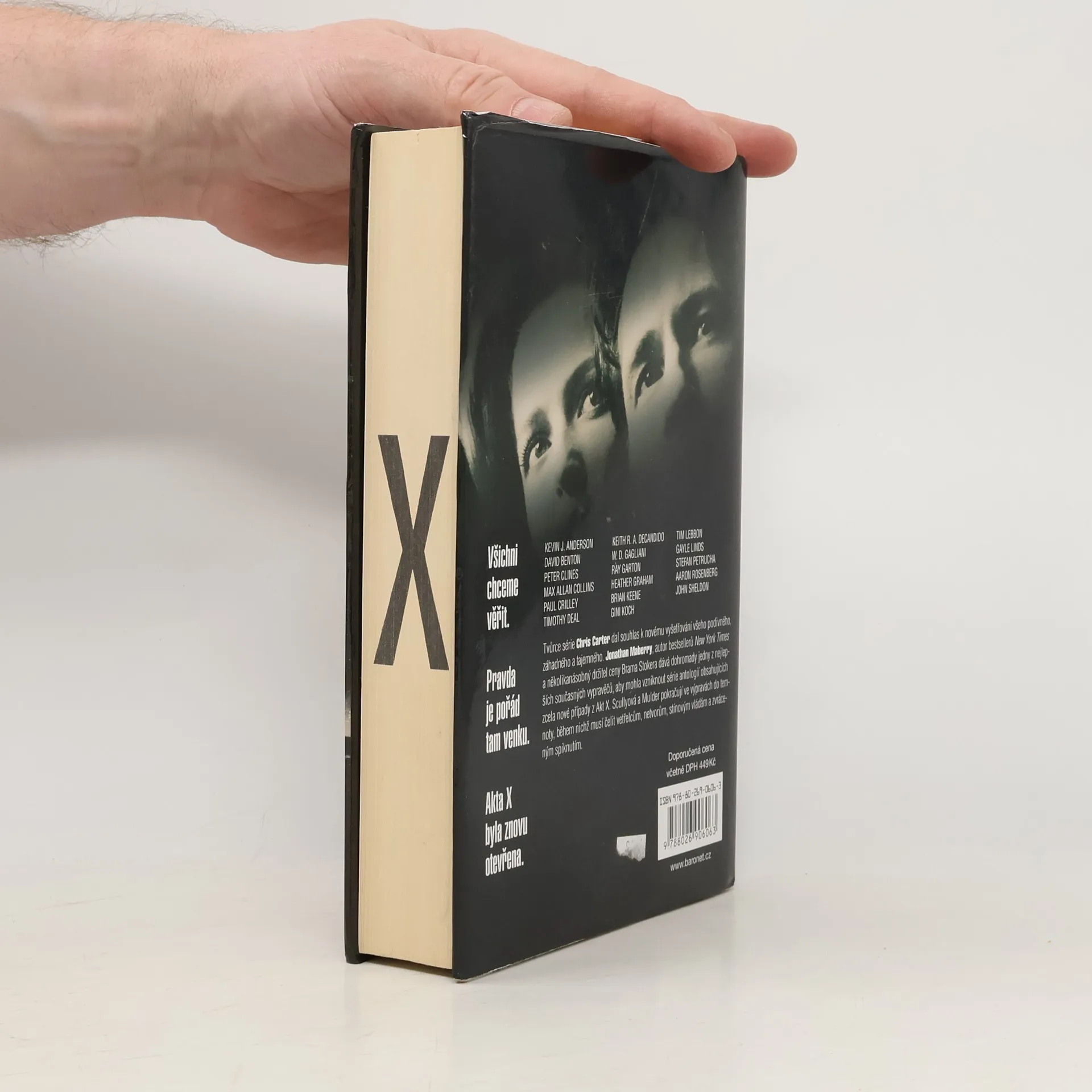 Všichni bychom tomu rádi uvěřili... „Pravda je někde tam venku.“ Akta X byla znovu otevřena a výsledkem je série patnácti příběhů z pera různých autorů, v nichž se na scénu vracejí agenti Mulder a Scullyová, aby pokračovali ve svých výpravách do děsivého přítmí, v němž musí čelit tváří v tvář mimozemšťanům, netvorům, intrikám i temným spiknutím. Jednotlivé povídky si v ničem nezadají s příběhy obou protagonistů, které čtenáři znají z televizních sérií i filmů. Editorem sbírky povídek je Jonathan Maberry, jehož jméno se objevuje v žebříčcích autorů bestsellerů listu New York Times a který je několikanásobným držitelem ceny Brama Stokera. Tento profesionální autor a učitel psaní publikoval více než tisíc článků, dvě hry a řadu románů i knih z oblasti literatury faktu.