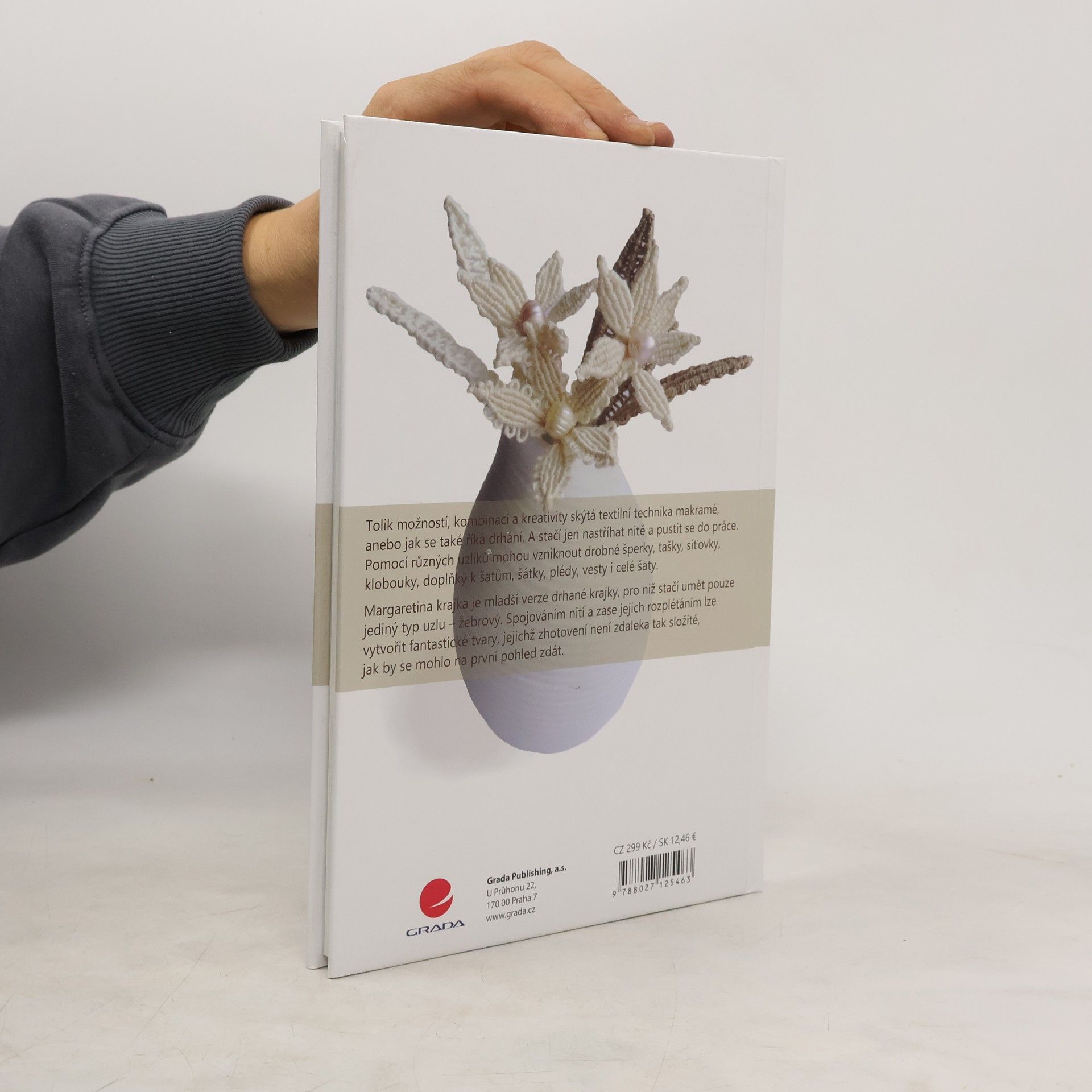 Krásná, přitom jednoduchá a dnes už téměř klasická textilní technika, kterou stojí určitě za to poznat. Po krátkém pohledu do historie následuje popis základních principů makramé a jejích odlišností od původní techniky drhání. Najdete zde vše, co pro její výrobu budete potřebovat včetně mnoha doprovodných fotografií, názorných nákresů a dobře srozumitelných návodů. Určitě vás překvapí, že neobvyklé a na první pohled složité vzory, lze vytvořit poměrně jednoduchými pracovními postupy. Stejným způsobem je v knize zpracovaná i příbuzná technika - Margaretina krajka.