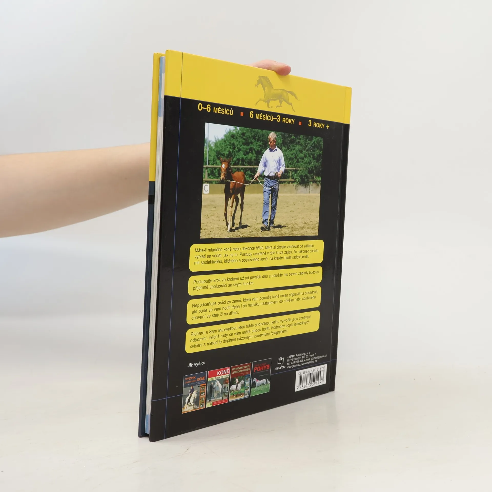 Úspěšná výchova od hříběte až do dospělosti... Máte-li mladého koně nebo dokonce hříbě, které si chcete vychovat od základu, vyplatí se vědět, jak na to. Postupy uvedené v této knize zajistí, že nakonec budete mít spolehlivého, klidného a poslušného koně, na kterém bude radost jezdit. Postupujte krok za krokem už od prvních dnů a položíte tak pevné základy budoucí příjemné spolupráci se svým koněm. Nepodceňujte práci ze země, která vám pomůže koně nejen připravit na obsednutí, ale bude se vám hodit třeba i při nácviku nastupování do přívěsu nebo správného chování ve stáji či na silnici. Richard a Sam Maxwellovi, kteří tuhle podnětnou knihu vytvořili, jsou uznávaní odborníci, jejichž rady se vám určitě budou hodit. Podrobný popis jednotlivých cvičení a metod je doplněn názornými barevnými fotografiemi.