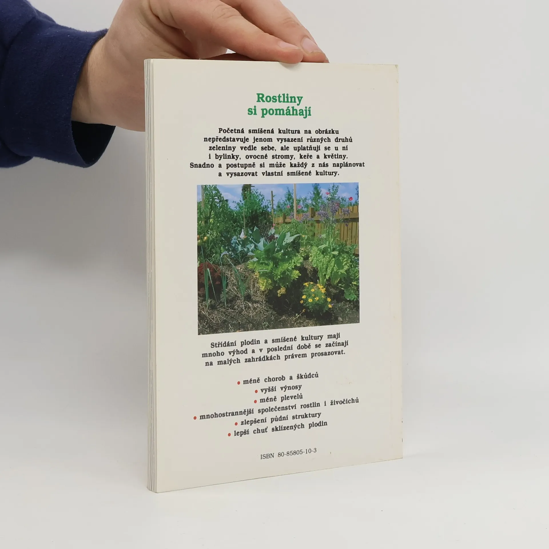 Vhodné kombinace pěstování rostlin. Střídání plodin a smíšené kultury mají mnoho výhod. Méně chorob a škůdců. Vyšší výnosy. Méně plevelů. Mnohostrannější společenství rostlin i živočichů. Zlepšení půdní struktury. Lepší chuť sklizených plodin. Z německého originálu „Mischkultur und Fruchtwechsel“ , vydaného roku 1990 nakladatelstvím Franckh-Kosmos ve Stuttgartu přeložila Ivana Kadlecová. Vydání 1.