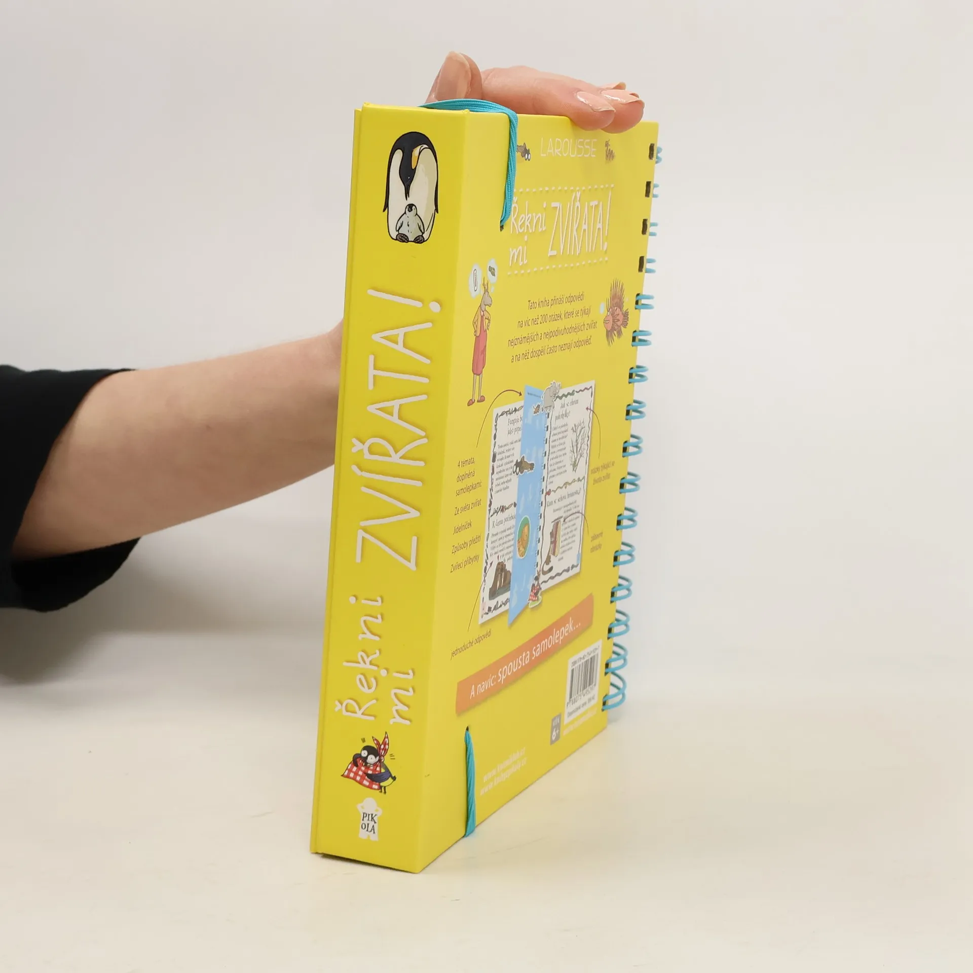 Další z oblíbených encyklopedií pro zvídavé děti z edice „Řekni mi“ je věnována zvířatům. Z odpovědí na více než 200 přemýšlivých otázek se děti dozvědí spoustu zajímavostí ze světa zvířat – jak se rozmnožují, jak se starají o svá mláďata, čím se živí, jaké mají nepřátele, kde bydlí, jak přezimují a zda jim nehrozí vyhubení… Knížka s praktickou spirálovou vazbou je určena dětem od šesti let. Jako obvykle nabízí půvabné a vtipné ilustrace a nechybí ani tři listy se samolepkami.