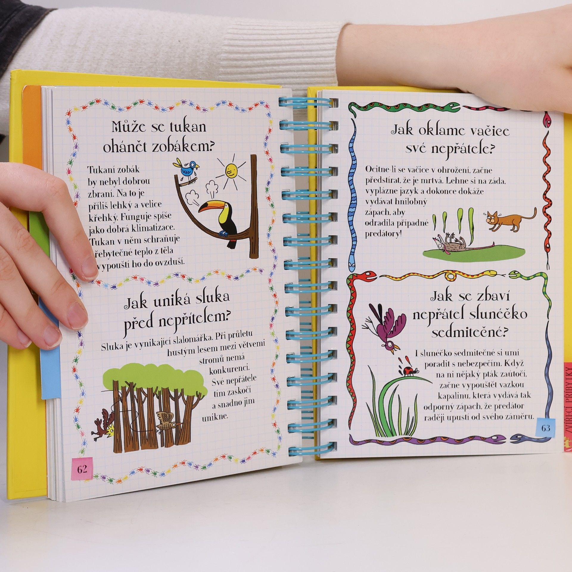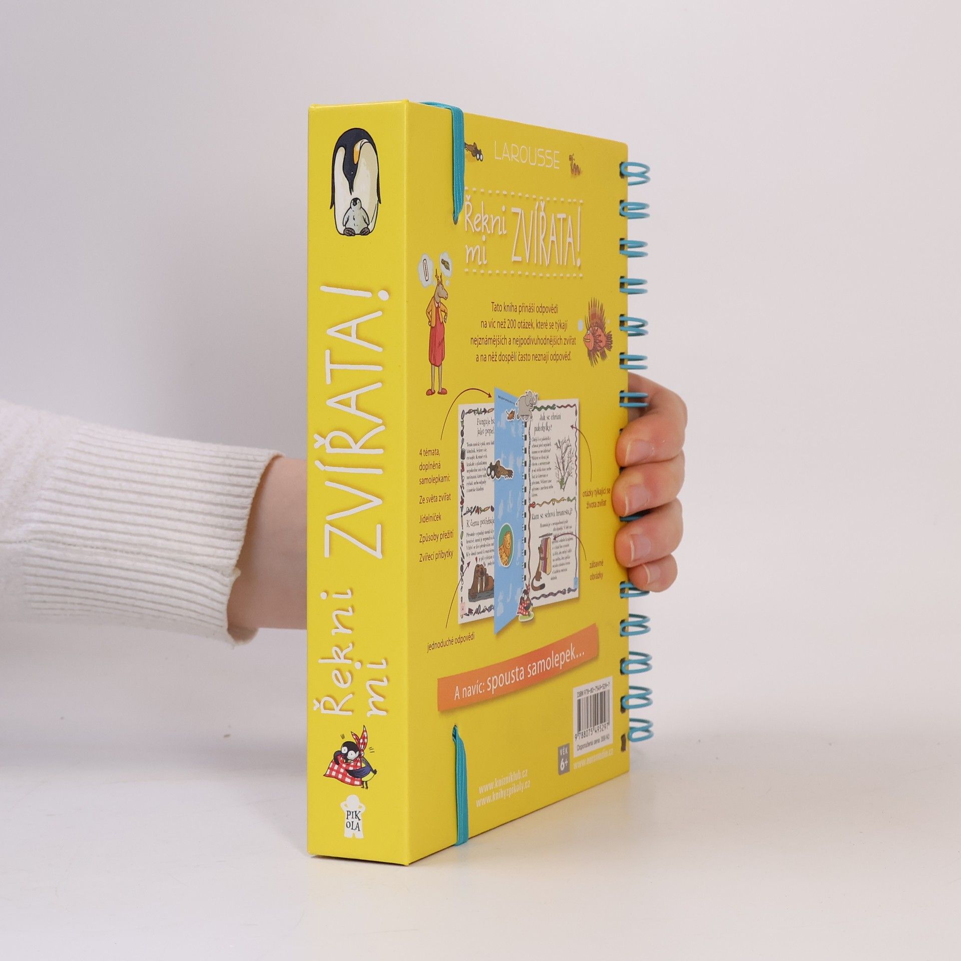 Další z oblíbených encyklopedií pro zvídavé děti z edice „Řekni mi“ je věnována zvířatům. Z odpovědí na více než 200 přemýšlivých otázek se děti dozvědí spoustu zajímavostí ze světa zvířat – jak se rozmnožují, jak se starají o svá mláďata, čím se živí, jaké mají nepřátele, kde bydlí, jak přezimují a zda jim nehrozí vyhubení… Knížka s praktickou spirálovou vazbou je určena dětem od šesti let. Jako obvykle nabízí půvabné a vtipné ilustrace a nechybí ani tři listy se samolepkami.
