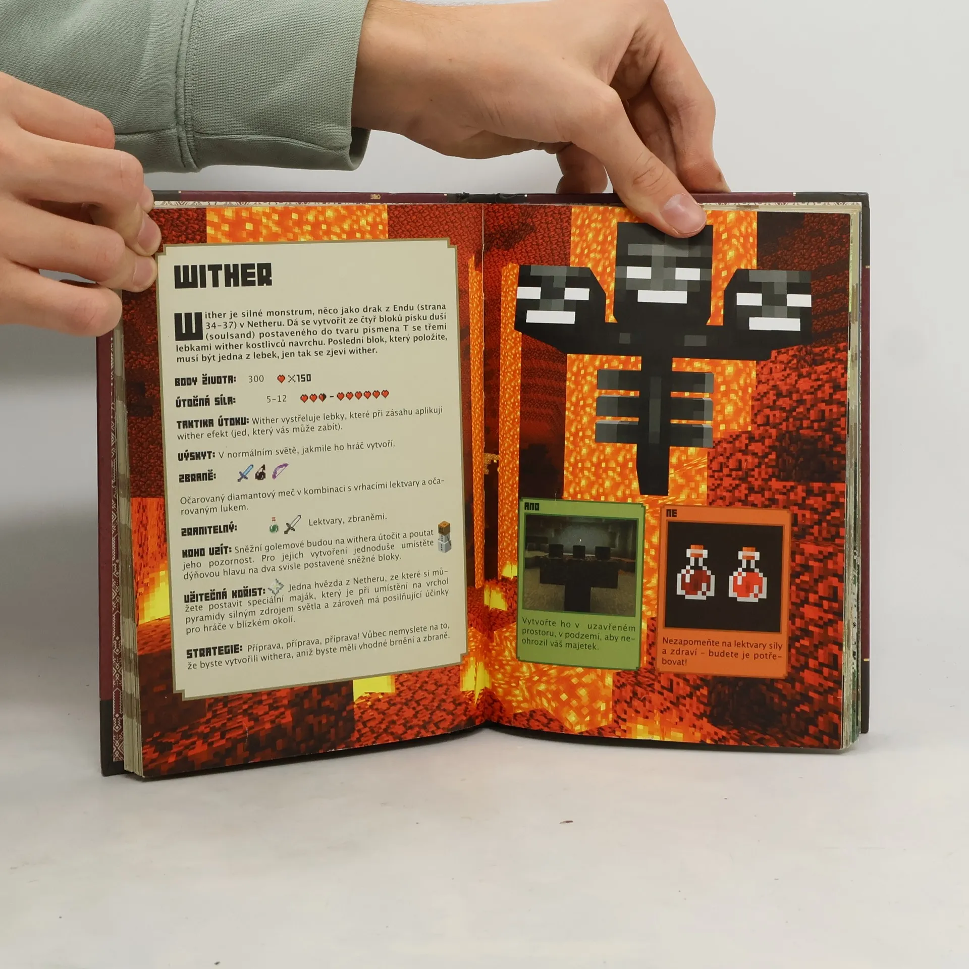 V Minecraftu nejste nikdy sami a hrozba, žena vás někdo zaútočí, je všudypřítomná. Jak můžete přežít? Oficiální Bojová příručka Minecraftu vás naučí všechno, co potřebujete znát, abyste se dokázali ubránit nepřátelským monstrům a hráčům. Naučte se stavět pevnosti, vyrábět obrněná vozidla či zbraně, líčit pasti nebo porážet nepřátele v boji jeden na jednoho. Probojujte se ven z Netheru či Endu. S tipy od mnoha odborníků se brzy stanete v Minecraftu obávanými bojovníky! Benefity: - kniha na téma jedné z nejoblíbenějších her současnosti, která má u nás velkou komunitu fanoušků - skvělé zpracování tématu - srozumitelný jazyk i pro nové fanoušky hry - vhodně zvolený formát