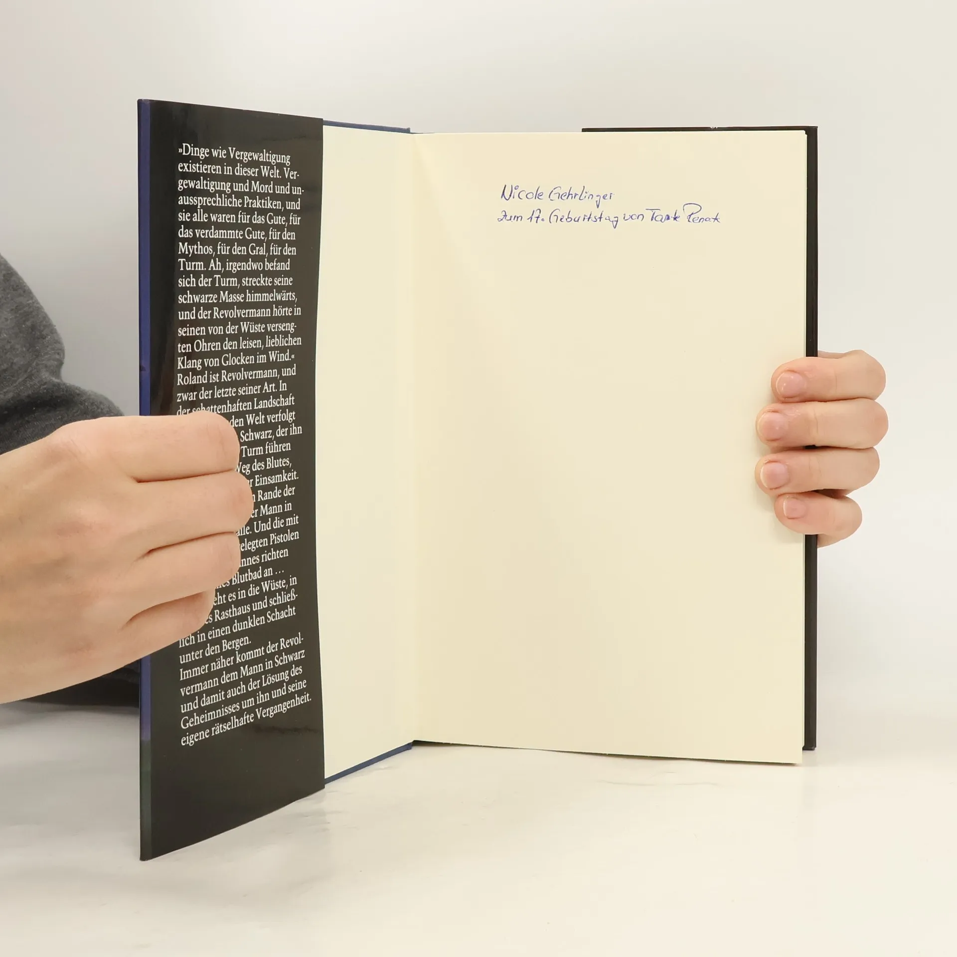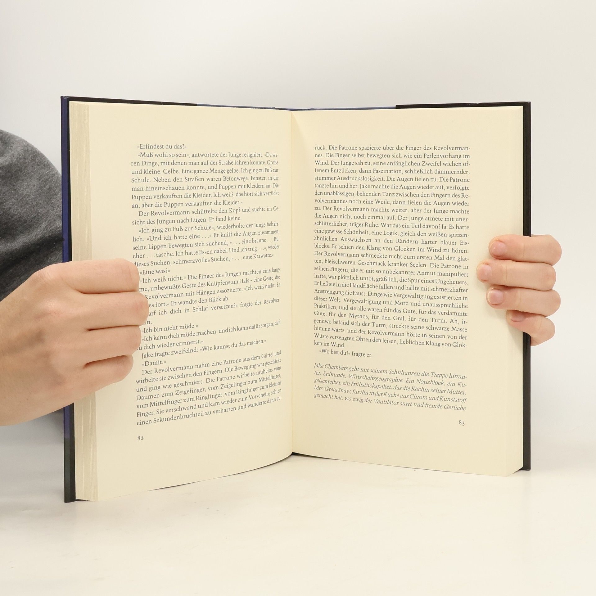 Auf der Suche nach dem mysteriösen Dunklen Turm durchstreift Roland, der letzte Revolvermann, eine sterbende Welt, wo in endlosen Wüsten und Ruinenstädten Dämonen, Sukkubi, Vampire und Geistermutanten hausen. Unbeirrt folgt er den Spuren des Mannes in Schwarz – er ist der Schlüssel zu den Mysterien des Dunklen Turms, der am Anfang der Zeit steht.