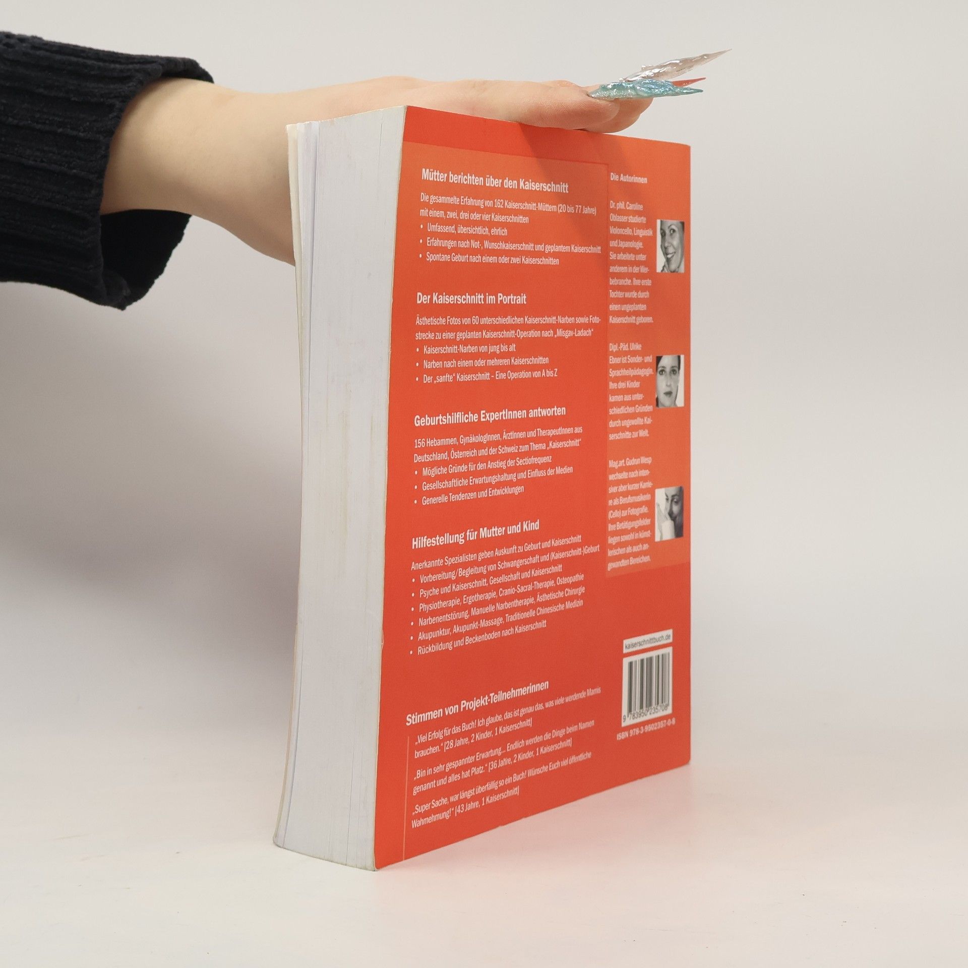 Das große Kaiserschnitt-Fotobuch "Der Kaiserschnitt hat kein Gesicht" bietet einen wertvollen und umfassenden Ratgeber für Frauen, (Kaiserschnitt-)Mütter und GeburtshelferInnen. Es vereint die Erfahrungen von 162 Kaiserschnitt-Müttern im Alter von 20 bis 77 Jahren, die einen, zwei, drei oder vier Kaiserschnitte erlebt haben. Der Inhalt ist umfassend und ehrlich, behandelt Not-, Wunsch- und geplante Kaiserschnitte sowie spontane Geburten nach einem oder zwei Kaiserschnitten. Ästhetische Fotos von 60 verschiedenen Kaiserschnitt-Narben und eine Fotostrecke zu einer geplanten Kaiserschnitt-Operation nach "Misgav-Ladach" sind ebenfalls enthalten. 156 Hebammen, GynäkologInnen, ÄrztInnen und TherapeutInnen aus Deutschland, Österreich und der Schweiz teilen ihr Wissen zum Thema Kaiserschnitt. Es gibt Hilfestellungen für Mutter und Kind, einschließlich Informationen zu Schwangerschaftsvorbereitung, Psyche, Physiotherapie, Ergotherapie, Cranio-Sacral-Therapie, Osteopathie, Narbenentstörung, ästhetischer Chirurgie, Akupunktur und Rückbildung nach Kaiserschnitt. Ein Geleitwort von Prof. Dr. med. Erich Saling, dem "Vater der Perinatalmedizin", rundet das Werk ab. Empfohlen von verschiedenen Fachorganisationen, spiegelt das Buch die Stimmen von Projekt-Teilnehmerinnen wider, die den Bedarf an solch einer Ressource betonen.
