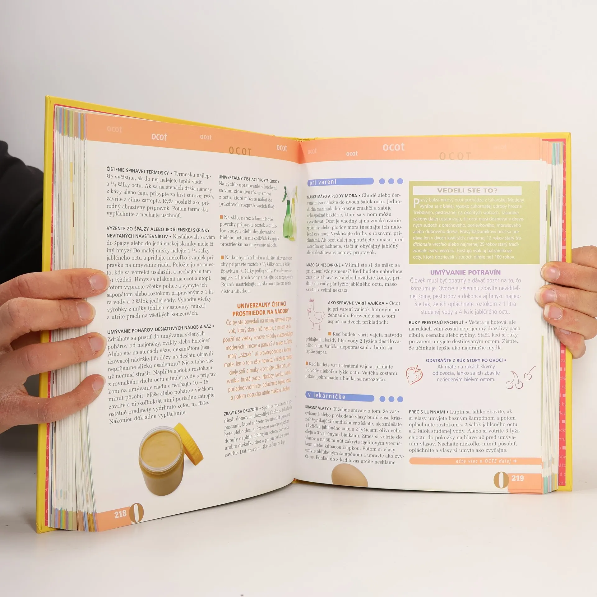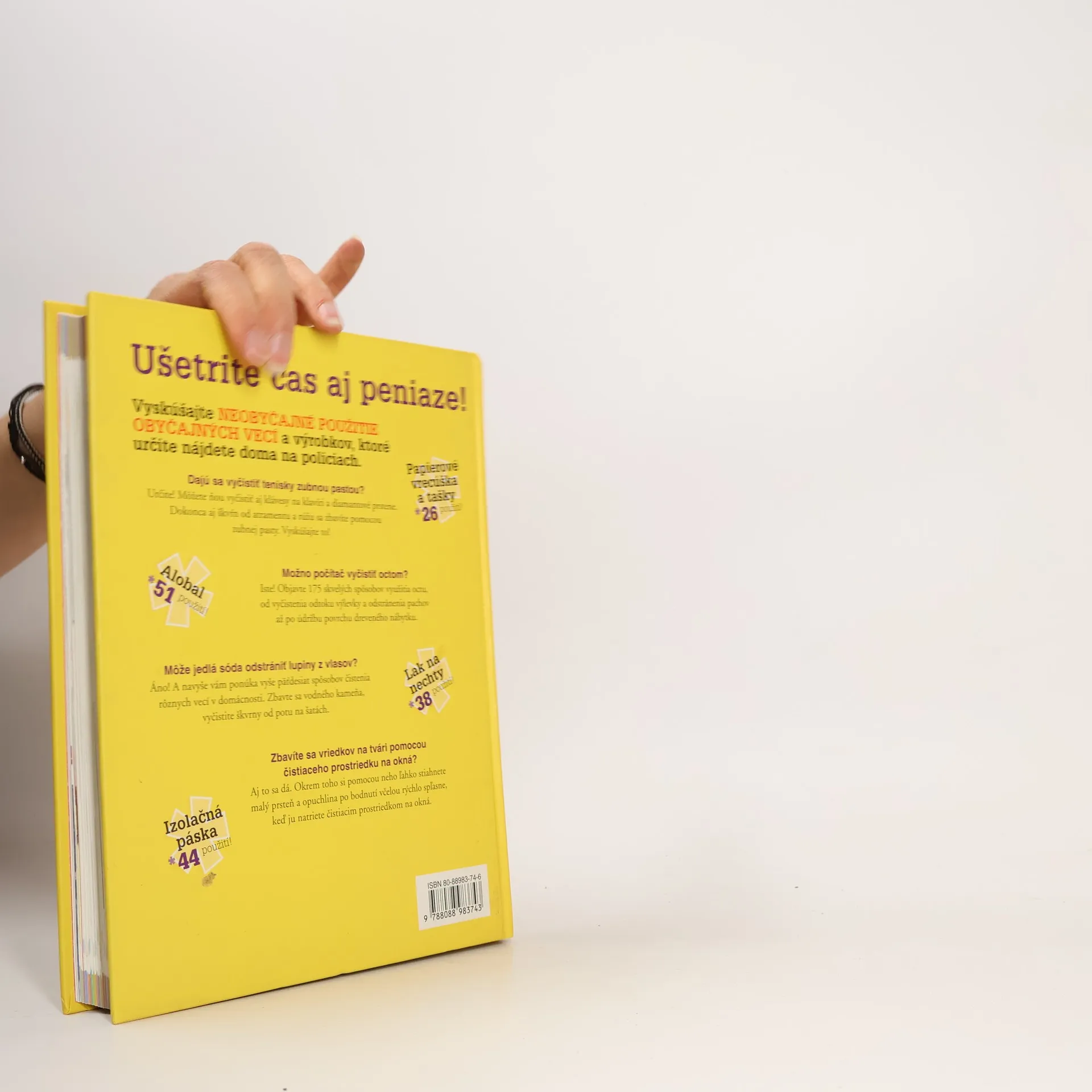 Vyskúšajte 2317 spôsobov ako ušetriť peniaze použitím octu, jedlej sódy, soli, zubnej pasty a ďalších bežných prostriedkov. Riedený čpavok výborne odstraňuje mastnotu. S jedlou sódou sa dobre umýva riad. Ocot prečistí sprchovú hlavicu, odstráni lepidlo, zbaví obuv škvŕn od soli. Zubná pasta zase dokáže vyhladiť škrabance na skle. Ďalej sa dozviete, na čo všetko sa dá použiť detský olejček, Savo, páska na koberce, čaj, lekársky lieh a desiatky užitočných maličkostí. Stačí otvoriť túto knihu a rozhliadnuť sa po domácnosti.