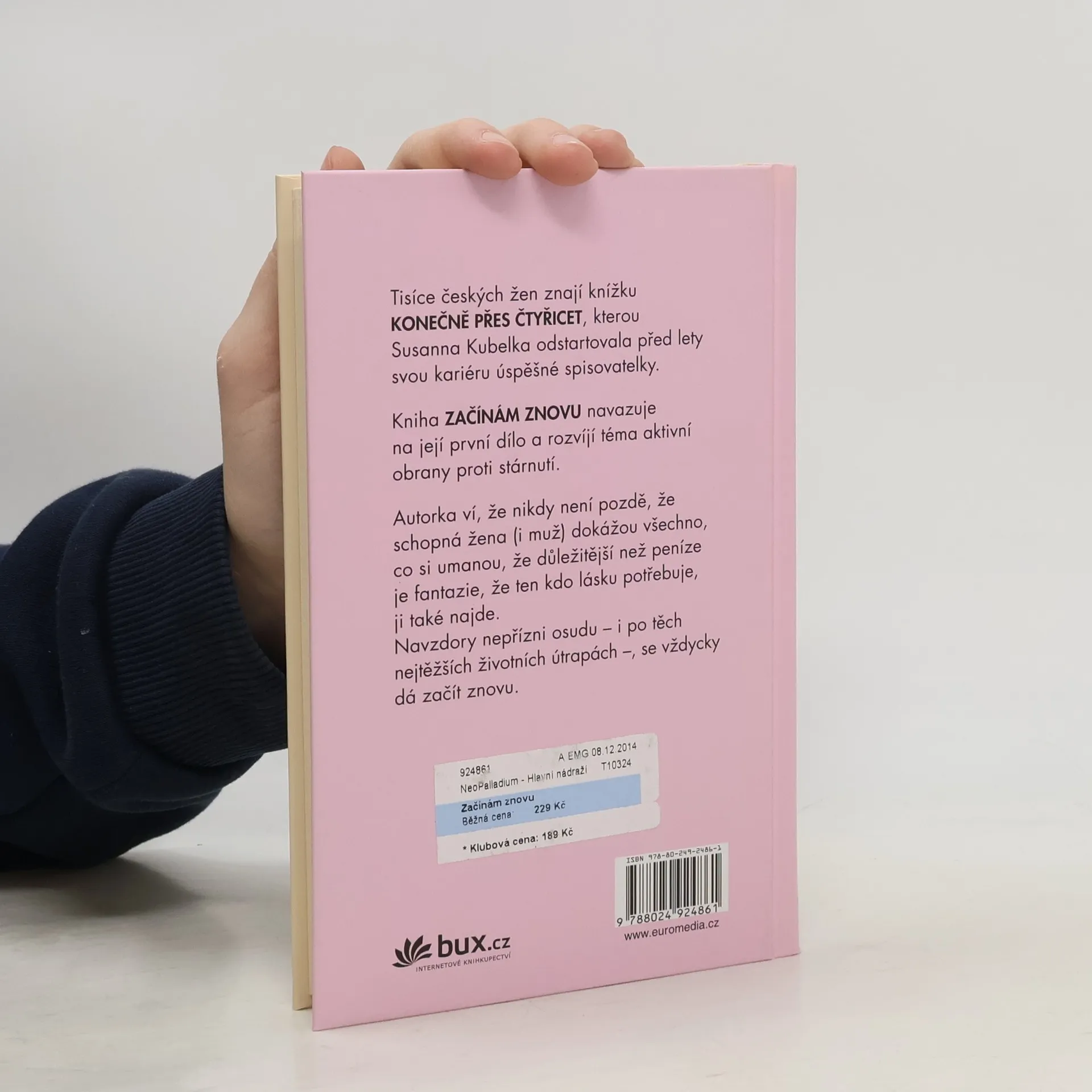 Kniha ZAČÍNÁM ZNOVU navazuje na autorčinu prvotinu KONEČNĚ PŘES ČTYŘICET a rozvíjí téma aktivní obrany proti stárnutí. Autorka ví, že nikdy není pozdě, že schopná žena (i muž) dokážou všechno, co si umanou, že důležitější než peníze je fantazie, že ten kdo lásku potřebuje, ji také najde, a navzdory nepřízni osudu – i po těch nejtěžších životních útrapách –, se dá začít znovu.