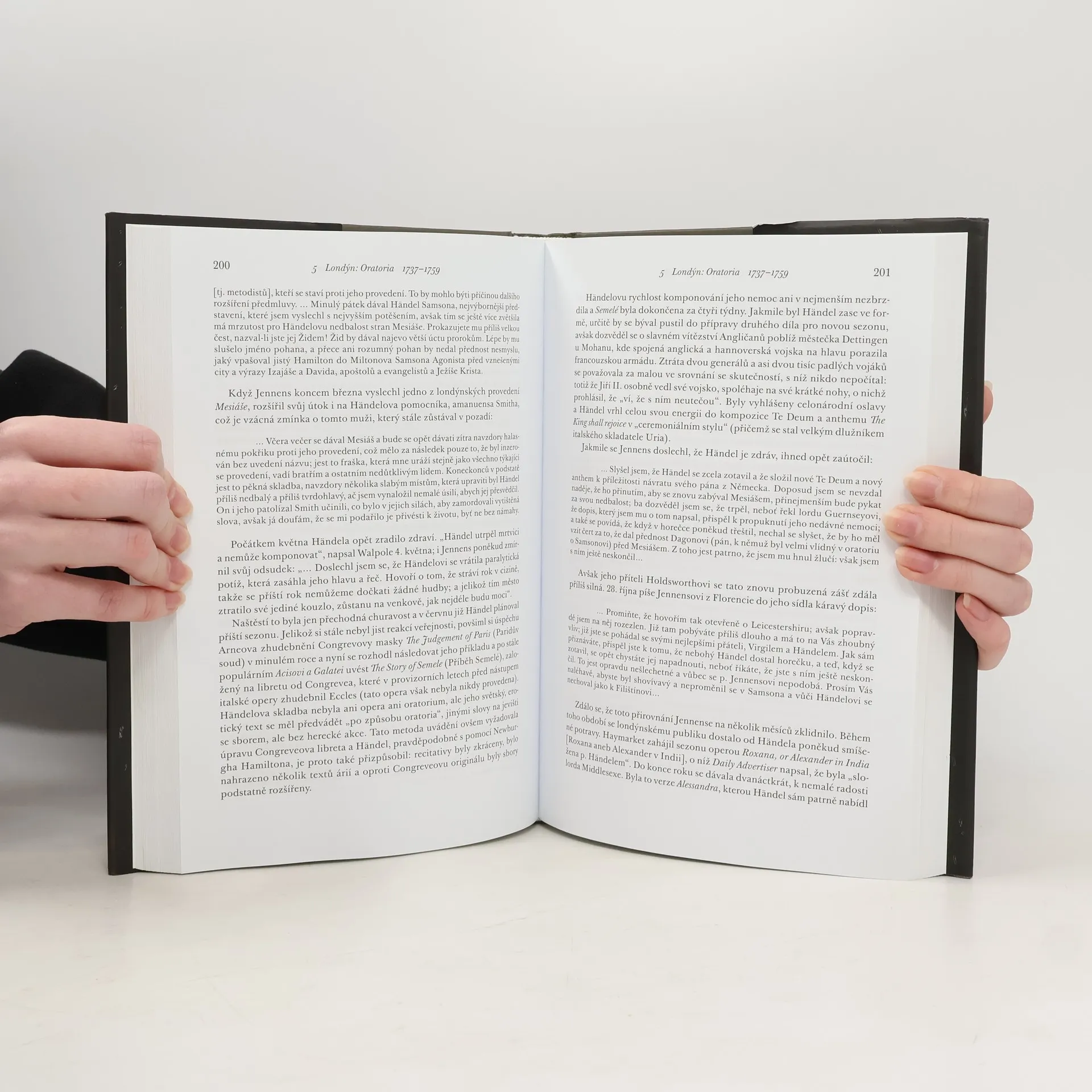G. F. Händel zůstává bezesporu jedním z největších géniů hudebních dějin. Přesto bylo mnoho fascinujících aspektů jeho tvorby zastřeno celými generacemi nekritického obdivu nebo mylných interpretací. Předkládané dílo čtenáře přivádí zpět k původnímu Händelovi díky propojení dobových dokumentů všeho druhu (citací z korespondence, a to jak Händelovy, tak jeho příznivců, dobových kritik, oslavných básní) s životopisnými postřehy i uvážlivým hodnocením Händelovy skladatelské práce. Výsledkem je ucelený, ale i zábavný portrét Händela jako člověka a vyčerpávající popis jeho kariéry na pozadí historických událostí první poloviny 18. století, zejména v Anglii. Zvláště významná je poslední kapitola, která sleduje vývoj händelovské legendy od skladatelovy smrti do současnosti. Přínosem je i autorův nový doslov, napsaný speciálně pro české vydání, který uvádí nejnovější výsledky bádání a přináší přehled současných inscenací Händelových oper. Knihu doplňuje obsáhlá chronologická tabulka, sestavená händelovským badatelem Anthonym Hicksem, která zaznamenává nejdůležitější události ve skladatelově životě a hudební kariéře. Rozsáhlá obrazová příloha přináší téměř 100 ilustrací, z toho 10 barevných. Český překlad jistě uvítají všichni zájemci o život a dílo jedné z nejvýznamnějších postav hudební historie.