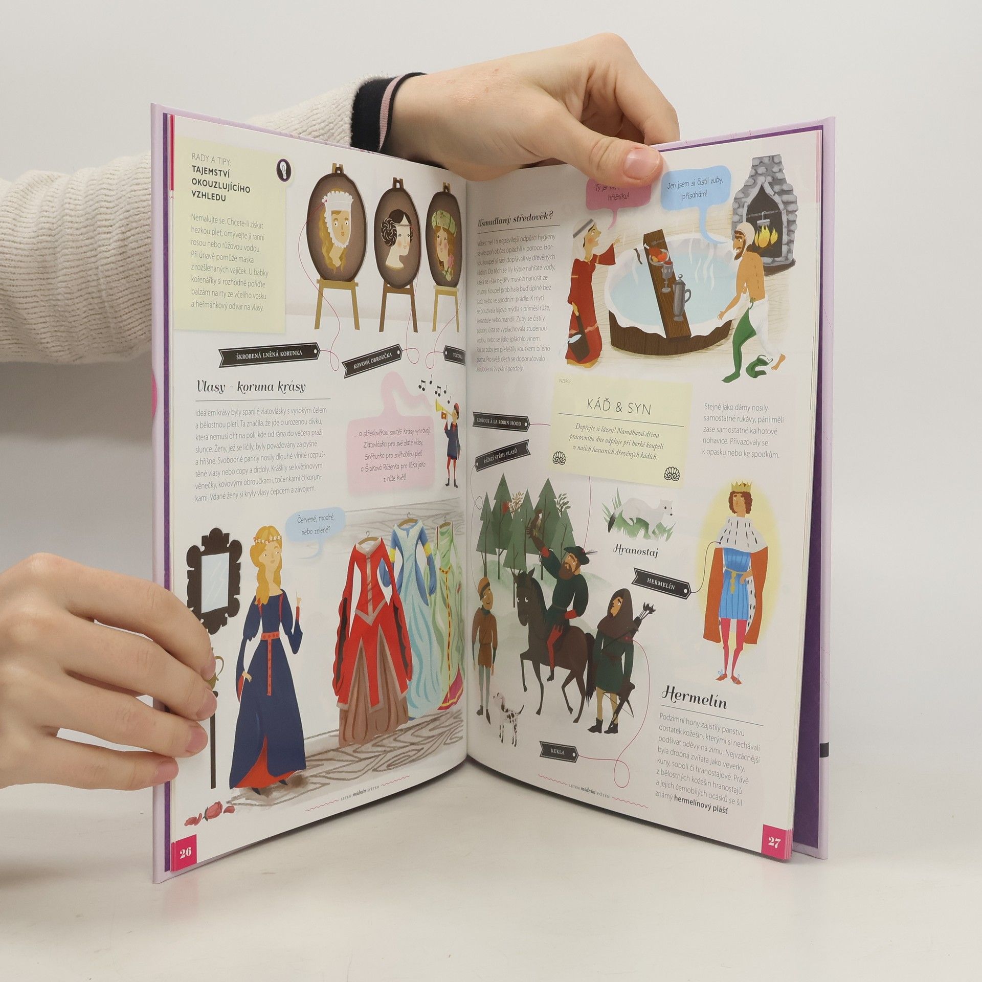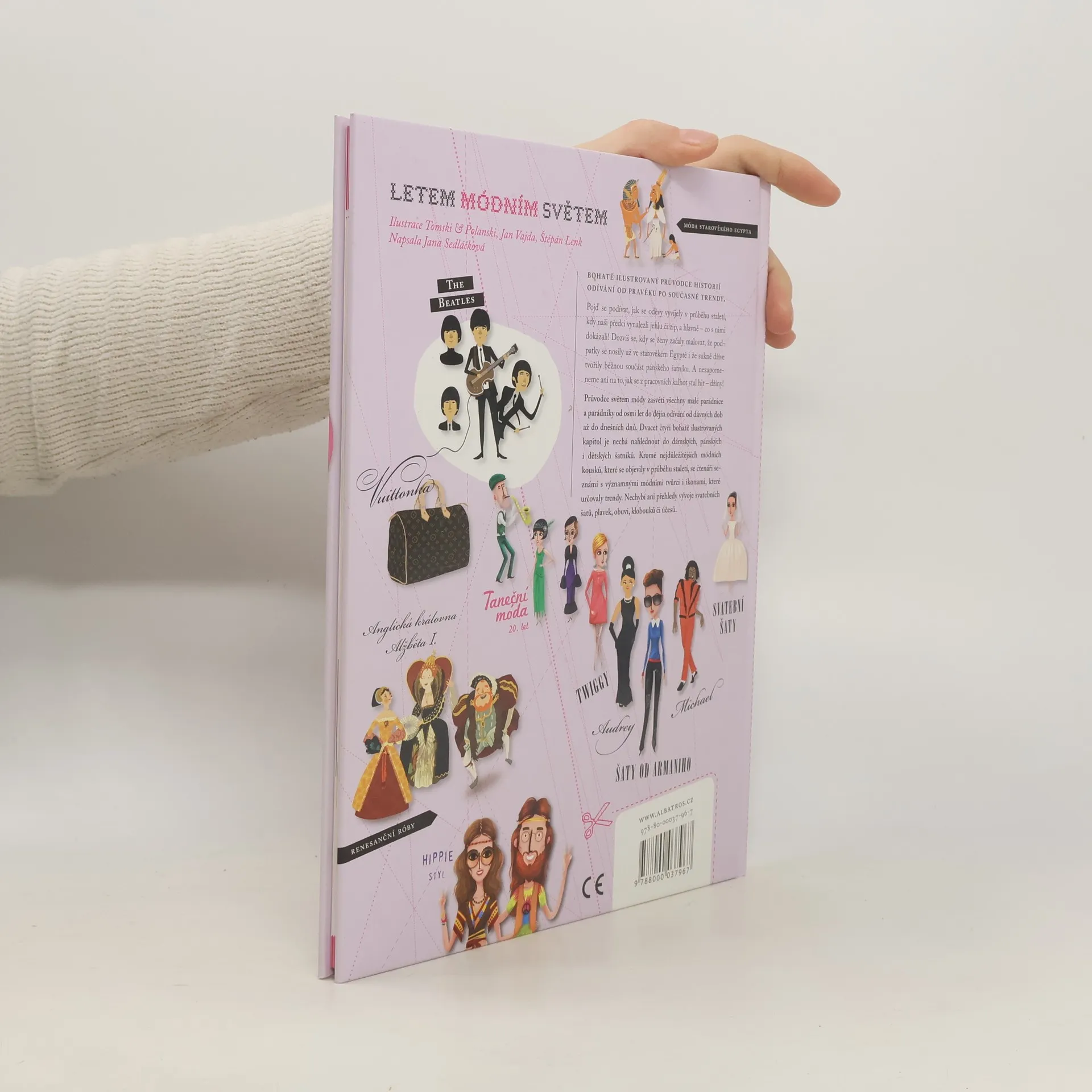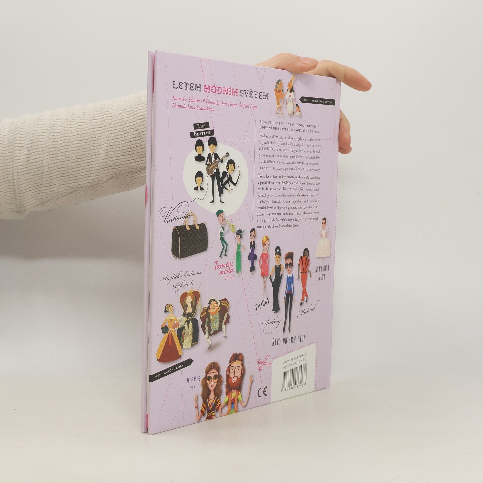 Bohatě ilustrovaný průvodce historie odívání od pravěku po současné trendy. Pojď se podívat, jak se oděvy vyvíjely v průběhu staletí, kdy naši předci vynalezli jehlu či zip, a hlavně – co s nimi dokázali! Dozvíš se, kdy se ženy začaly malovat, že podpatky se nosily už ve starověkém Egyptě i že sukně dříve tvořily běžnou součást pánského šatníku. A nezapomeneme ani na to, jak se z pracovních kalhot stal hit – džíny! Průvodce světem módy provede všechny malé parádnice a parádníky od osmi let historií odívání od pravěku až po dnešní dny. Dvacet čtyři bohatě ilustrovaných kapitol je nechá nahlédnout do dámských, pánských i dětských šatníků. Kromě nejdůležitějších módních kousků, které se objevily v průběhu staletí, se čtenáři seznámí s významnými módními tvůrci i ikonami, které určovaly trendy. Nechybí ani přehledy vývoje svatebních šatů, plavek, obuvi, klobouků či účesů. Zajímá tě móda? Víš přesně, které kousky šatů se k sobě hodí a které spolu naopak vůbec neladí? Sleduješ trendy a neunikne ti žádná módní novinka? Pak ti nesmí uniknout ani tahle kniha.