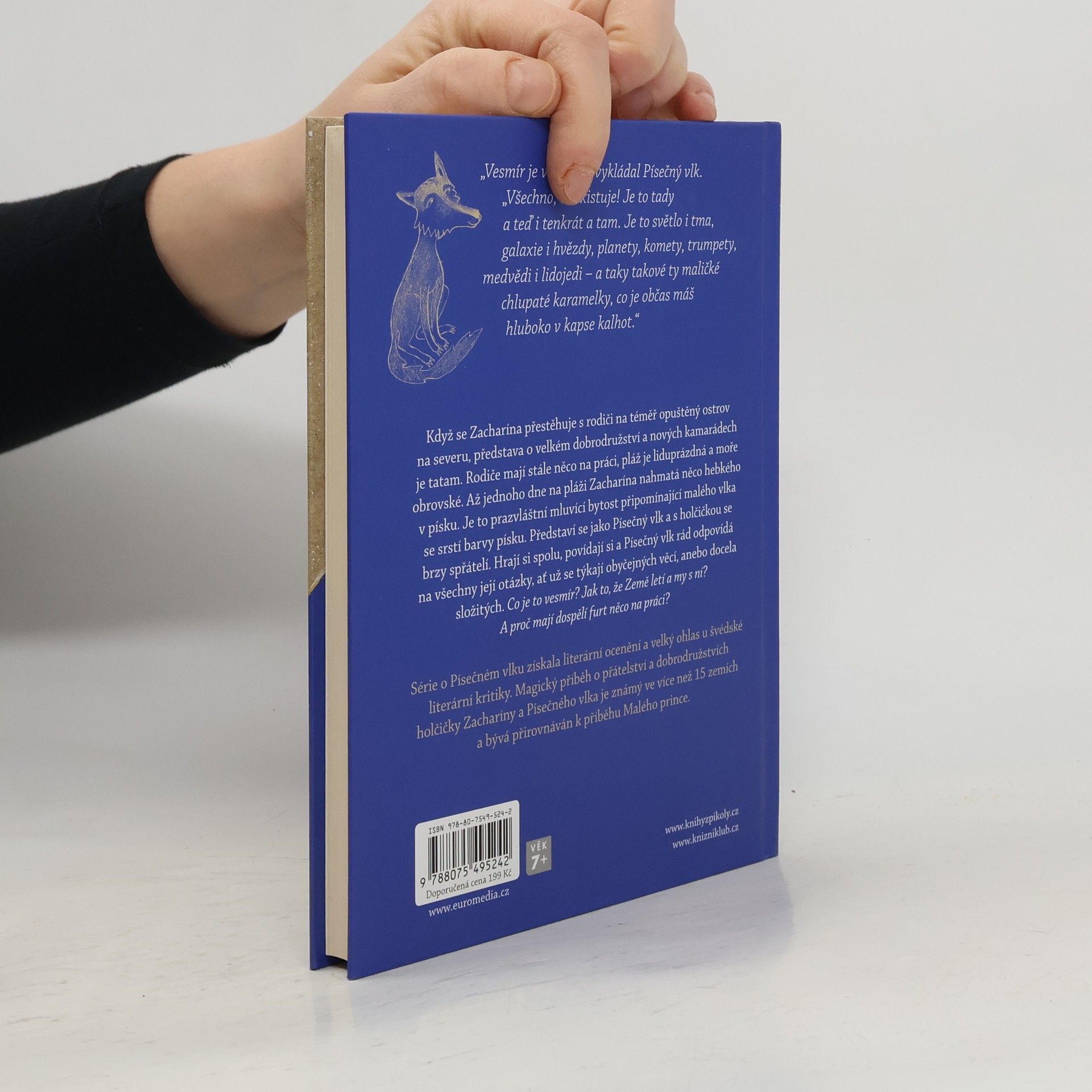 Pohádky pro dívky do 10 let. Když se Zacharína přestěhuje s rodiči do domečku na téměř opuštěný ostrov na severu, představa o velkém dobrodružství a nových kamarádech je tatam. Rodiče mají stále něco na práci, pláž je liduprázdná a moře obrovské. Až jednoho dne na pláži Zacharína nahmatá něco hebkého v písku. Je to prazvláštní mluvící bytost připomínající malého vlka se srstí barvy písku. Představí se jako Písečný vlk a s holčičkou se brzy spřátelí. Hrají si spolu, povídají si a Písečný vlk rád odpovídá na všechny její otázky, ať už se týkají obyčejných věcí, anebo docela složitých. Co je to vesmír? Jak to, že Země letí a my s ní? A proč mají dospělí furt něco na práci?