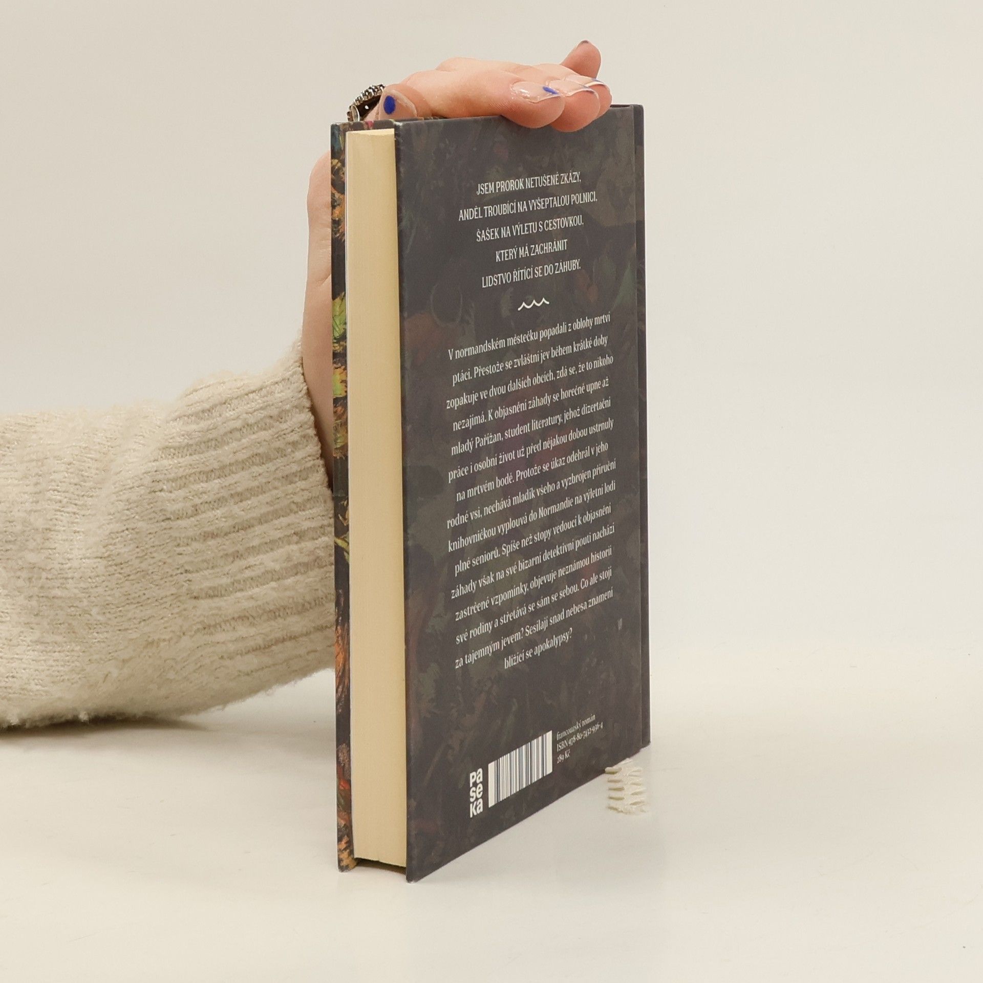 V normandském městečku popadali z oblohy mrtví ptáci. Přestože se zvláštní jev během krátké doby zopakuje ve dvou dalších obcích, zdá se, že to nikoho nezajímá. K objasnění záhady se horečně upne až mladý Pařížan, student literatury, jehož disertační práce i osobní život už před nějakou dobou ustrnuly na mrtvém bodě. Protože se úkaz odehrál v jeho rodné vsi, nechává mladík všeho a vyzbrojen příruční knihovničkou vyplouvá do Normandie na výletní lodi plné seniorů. Spíše než stopy vedoucí k objasnění záhady však na své bizarní detektivní pouti nachází vzpomínky, objevuje neznámou historii své rodiny a střetává se sám se sebou. Co ale stojí za tajemným jevem? Sesílají snad nebesa znamení blížící se apokalypsy?