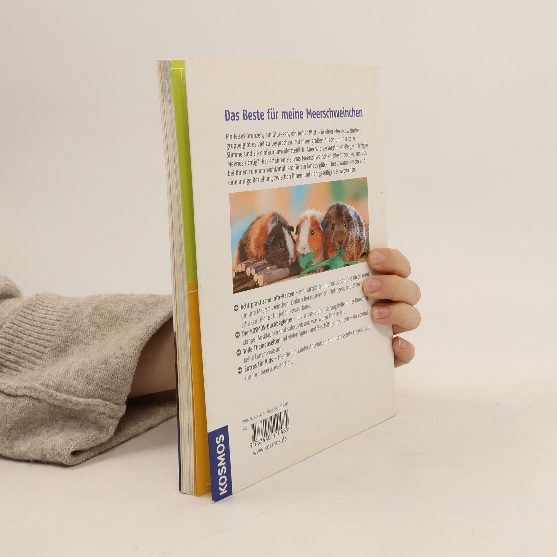 Ein leises Grunzen, ein Glucksen, ein hoher Pfiff – in einer Meerschweinchengruppe gibt es viel zu besprechen. Mit ihren großen Augen und der zarten Stimme sind sie einfach unwiderstehlich. Aber wie versorgt man die gesprächigen Meeries richtig? Hier erfahren Sie, was Meerschweinchen alles brauchen, um sich bei Ihnen rundum wohlzufühlen: für ein langes glückliches Zusammensein und eine innige Beziehung zwischen Ihnen und den geselligen Schweinchen. -Acht praktische Info-Karten – mit nützlichen Informationen und Ideen rund um Ihre Meerschweinchen. Einfach heraustrennen, eintragen, mitnehmen, verschicken. Hier ist für jeden etwas dabei. -Der KOSMOS-Buchbegleiter – die schnelle Orientierungshilfe in der Umschlagklappe. Ausklappen und sofort wissen, was wo zu finden ist. -Tolle Themenseiten mit vielen Spiel- und Beschäftigungsideen – da kommt keine Langeweile auf. -Extras für Kids – hier finden Kinder Antworten auf interessante Fragen rund um ihre Meerschweinchen.