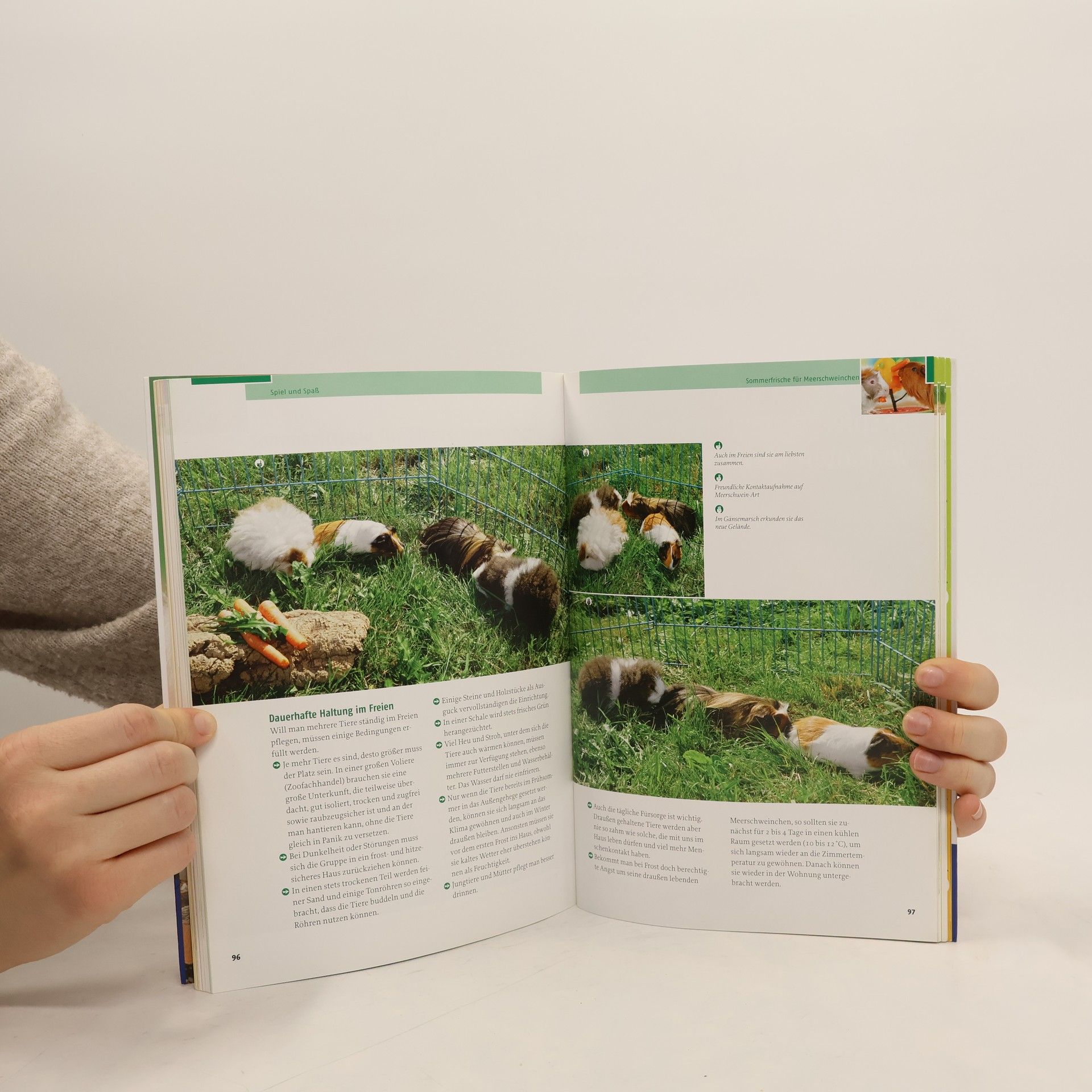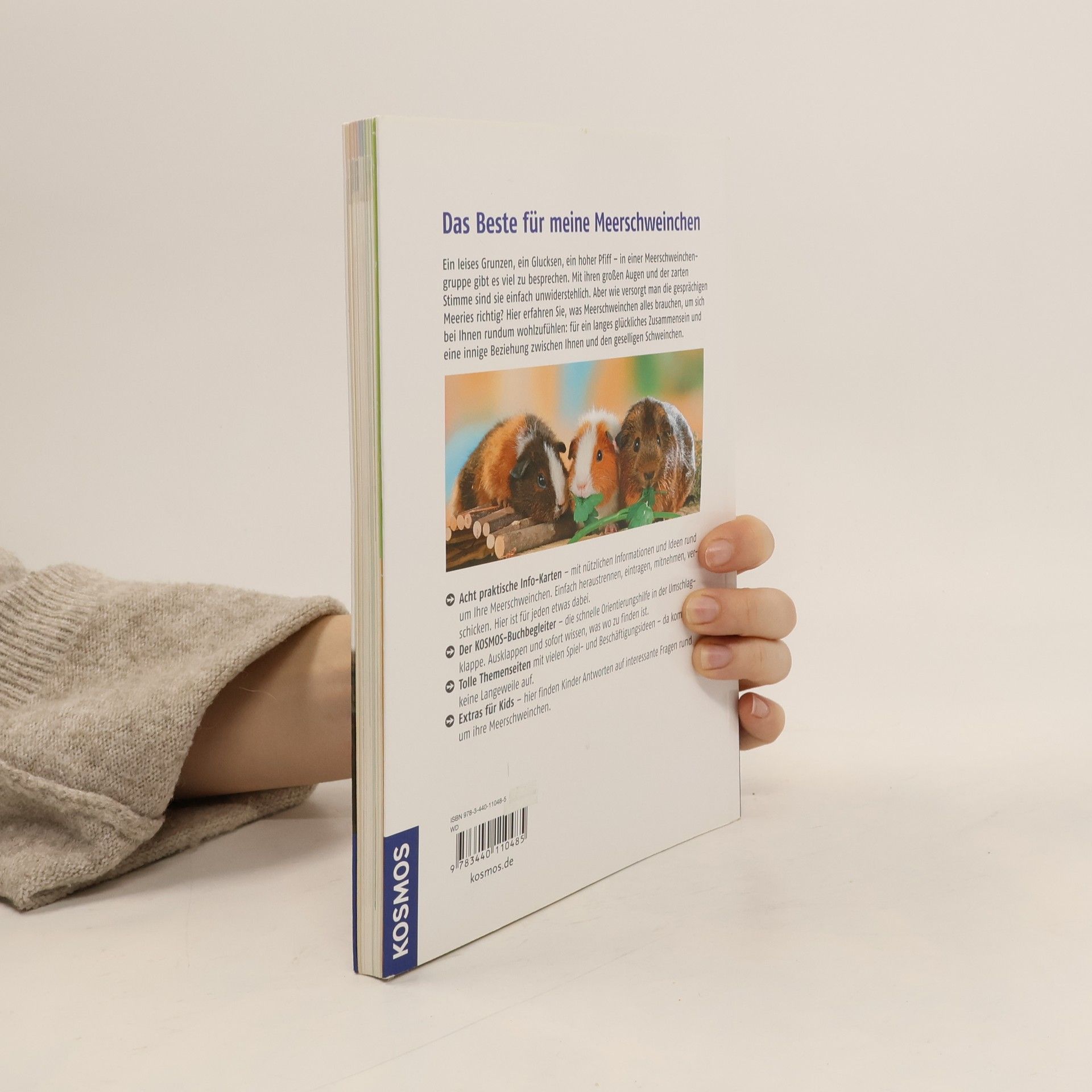 Ein leises Grunzen, ein Glucksen, ein hoher Pfiff – in einer Meerschweinchengruppe gibt es viel zu besprechen. Mit ihren großen Augen und der zarten Stimme sind sie einfach unwiderstehlich. Aber wie versorgt man die gesprächigen Meeries richtig? Hier erfahren Sie, was Meerschweinchen alles brauchen, um sich bei Ihnen rundum wohlzufühlen: für ein langes glückliches Zusammensein und eine innige Beziehung zwischen Ihnen und den geselligen Schweinchen. -Acht praktische Info-Karten – mit nützlichen Informationen und Ideen rund um Ihre Meerschweinchen. Einfach heraustrennen, eintragen, mitnehmen, verschicken. Hier ist für jeden etwas dabei. -Der KOSMOS-Buchbegleiter – die schnelle Orientierungshilfe in der Umschlagklappe. Ausklappen und sofort wissen, was wo zu finden ist. -Tolle Themenseiten mit vielen Spiel- und Beschäftigungsideen – da kommt keine Langeweile auf. -Extras für Kids – hier finden Kinder Antworten auf interessante Fragen rund um ihre Meerschweinchen.