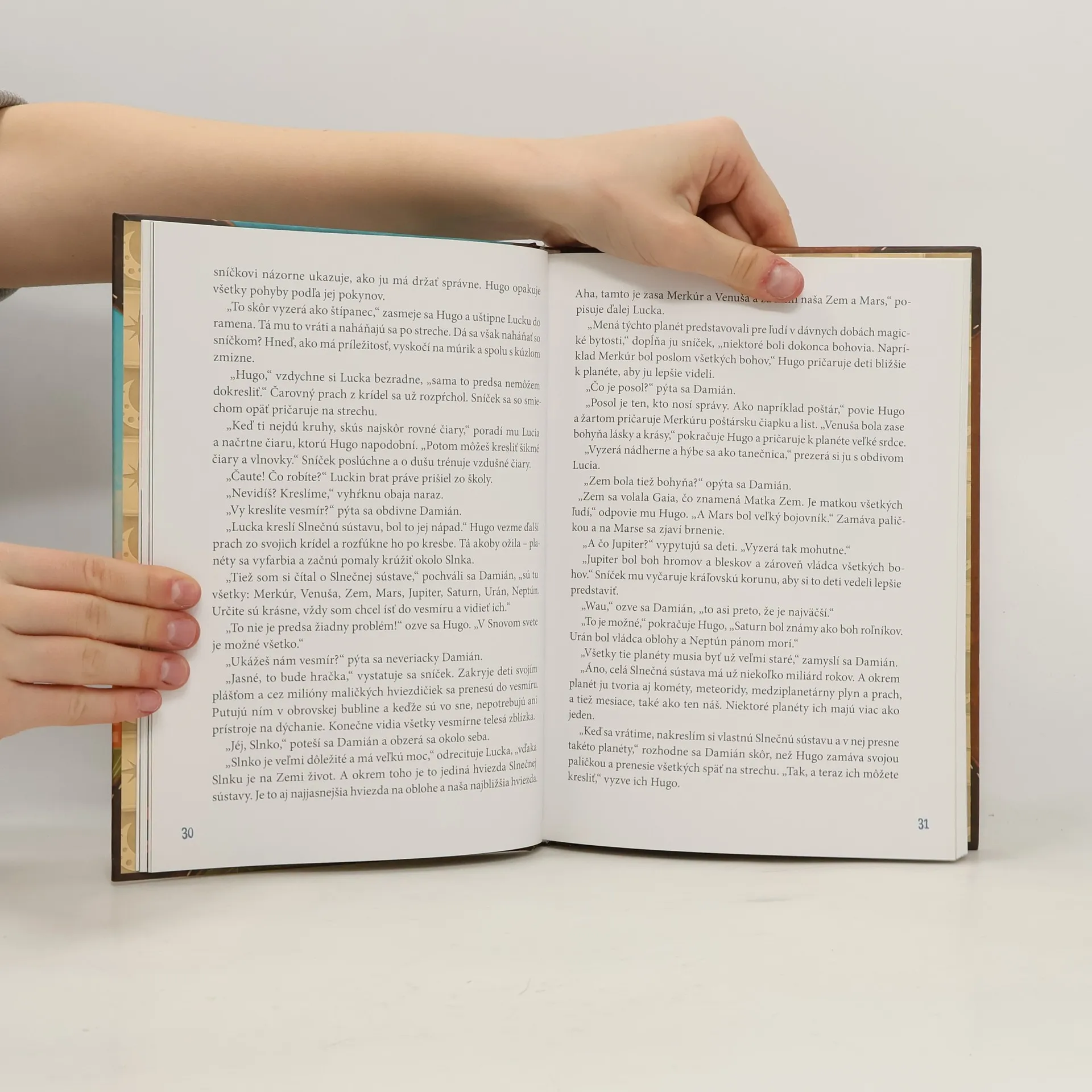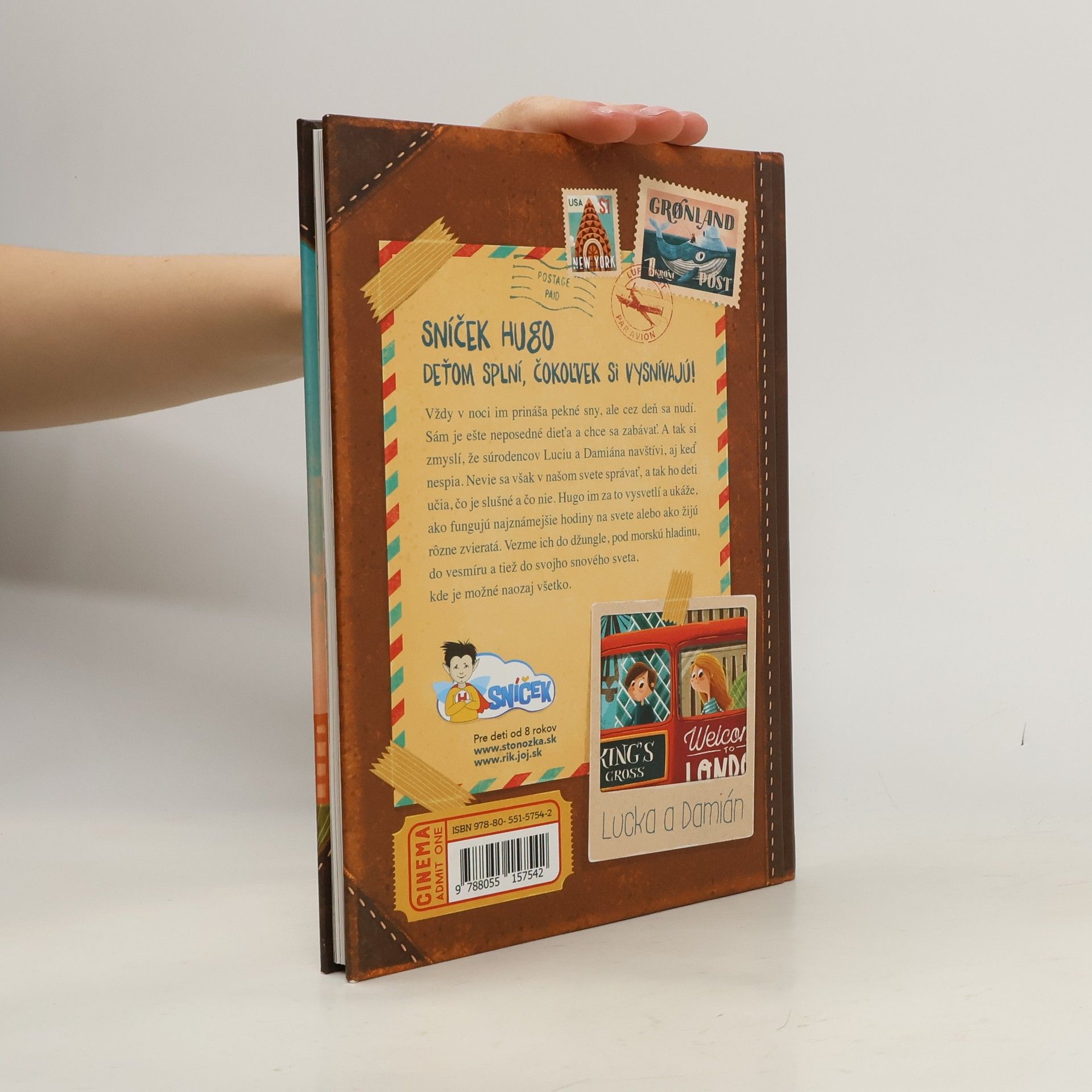 Sníček Hugo deťom splní, čokoľvek si vysnívajú! Vždy v noci im prináša pekné sny, ale cez deň sa nudí. Sám je ešte neposedné dieťa a chce sa zabávať. A tak si zmyslí, že súrodencov Luciu a Damiána navštívi, aj keď nespia. Nevie sa však v našom svete správať, a tak ho deti učia, čo je slušné a čo nie. Hugo im za to vysvetlí a ukáže, ako fungujú najznámejšie hodiny na svete alebo ako žijú rôzne zvieratá. Vezme ich do džungle, pod morskú hladinu, do vesmíru a tiež do svojho snového sveta, kde je možné naozaj všetko.