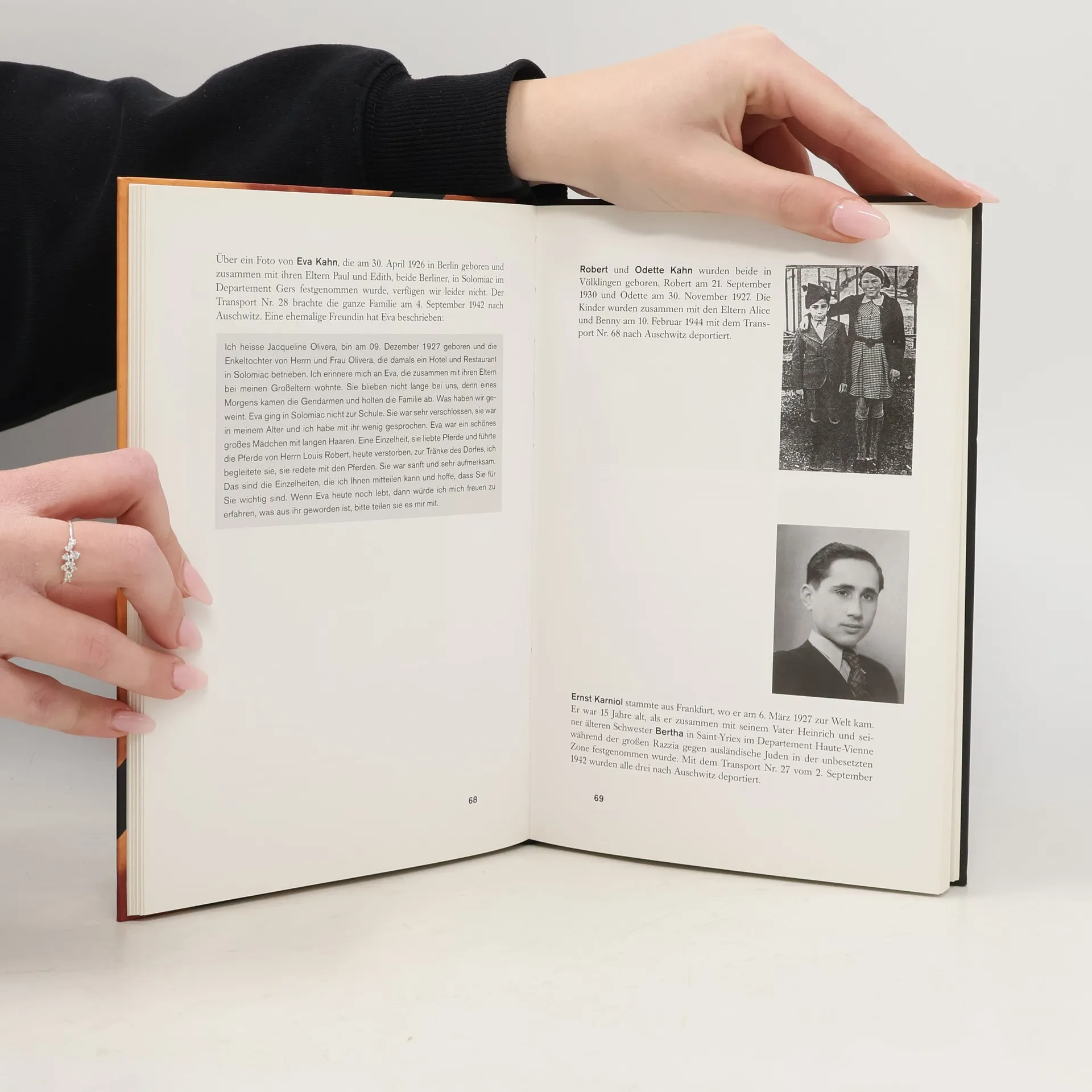 Während der deutschen Besatzung Frankreichs wurden von dort rund 76.000 Juden in die Vernichtungslager deportiert, darunter über 11.000 Kinder, die nach dem Transport sofort ermordet wurden. Etwa 800 dieser Kinder stammten aus Deutschland und Österreich. Von dort waren sie mit ihren Eltern vor den Nationalsozialisten nach Frankreich geflohen. Mit großem Engagement haben Beate und Serge Klarsfeld alle verfügbaren Informationen über diese Kinder zusammengetragen, um an ihr Schicksal zu erinnern und sie vor dem Vergessen zu bewahren. Es finden sich Briefe der Kinder an ihre Eltern und Freunde, teilweise in Handschrift, und andere Dokumente wie Kopien von Reisepässen, Deportationslisten oder Zeitungsartikel. Viele Lebensläufe lassen sich so gut dokumentieren. Neben Lebensdaten, Herkunftsort der Kinder und Nummer ihres Transports blicken uns auf etwa 200 Fotos ihre Gesichter an. Mit diesem Buch soll an das Leben der ermordeten Kinder erinnert werden. Es hebt sie aus der anonymen Masse der Opfer heraus und macht sie wieder als Individuen sichtbar. Ein Vorwort von Serge Klarsfeld leitet das Buch ein. Es folgen die rekonstruierbaren Lebensläufe von 163 Kindern mit Fotos und anderen Dokumenten sowie eine vollständige Liste der ermittelten Kinder.