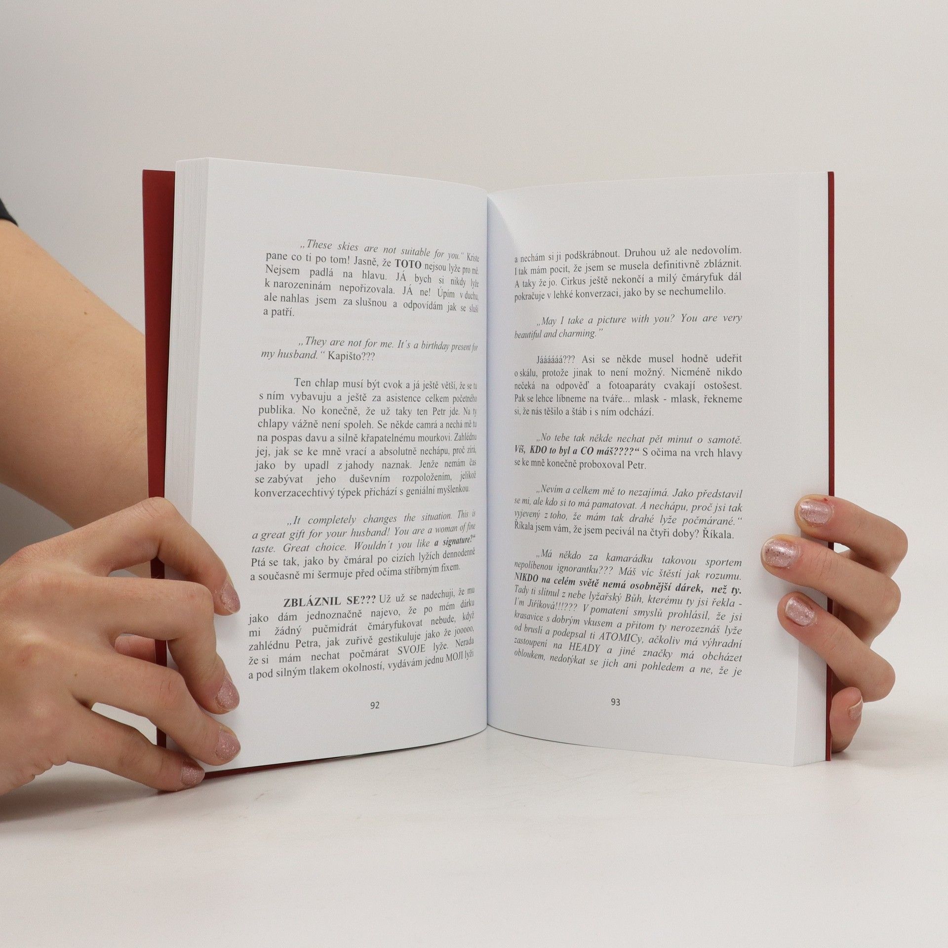 je knížka blogů, které autorka postupně psala pro server Ženy s.r.o. a bookazine Česká máma. Jde o její úvahy, postřehy, komentáře, vzpomínky, zážitky nebo příběhy, které zažila na vlastní kůži či slyšela na vlastní uši a chtěla se o ně zkrátka podělit. S nadhledem, humorem, laskavostí a trochou nadsázky píše o lásce, víře, bolesti a naději, kamarádství i rozchodech, dětičkách, studentských eskapádách, trapasech, dietách, tajemstvích, pravdě a lži, sexu a samozřejmě mužích, kteří nás někdy válcují, ale my je přesto pořád milujeme. Jsou jako andělé spadlí z nebe. Škoda, že většina na hlavu. Mrkající Usmívající se Mrkající Knížku můžete číst odpředu, zezadu i zprostředka. A když si k tomu nalijete něco dobrého, na chvilku zapomenete na každodenní problémy, starosti a navíc se zasmějete, není lepší odměny. Vždyť o to v životě jde. Nebrat se příliš vážně.