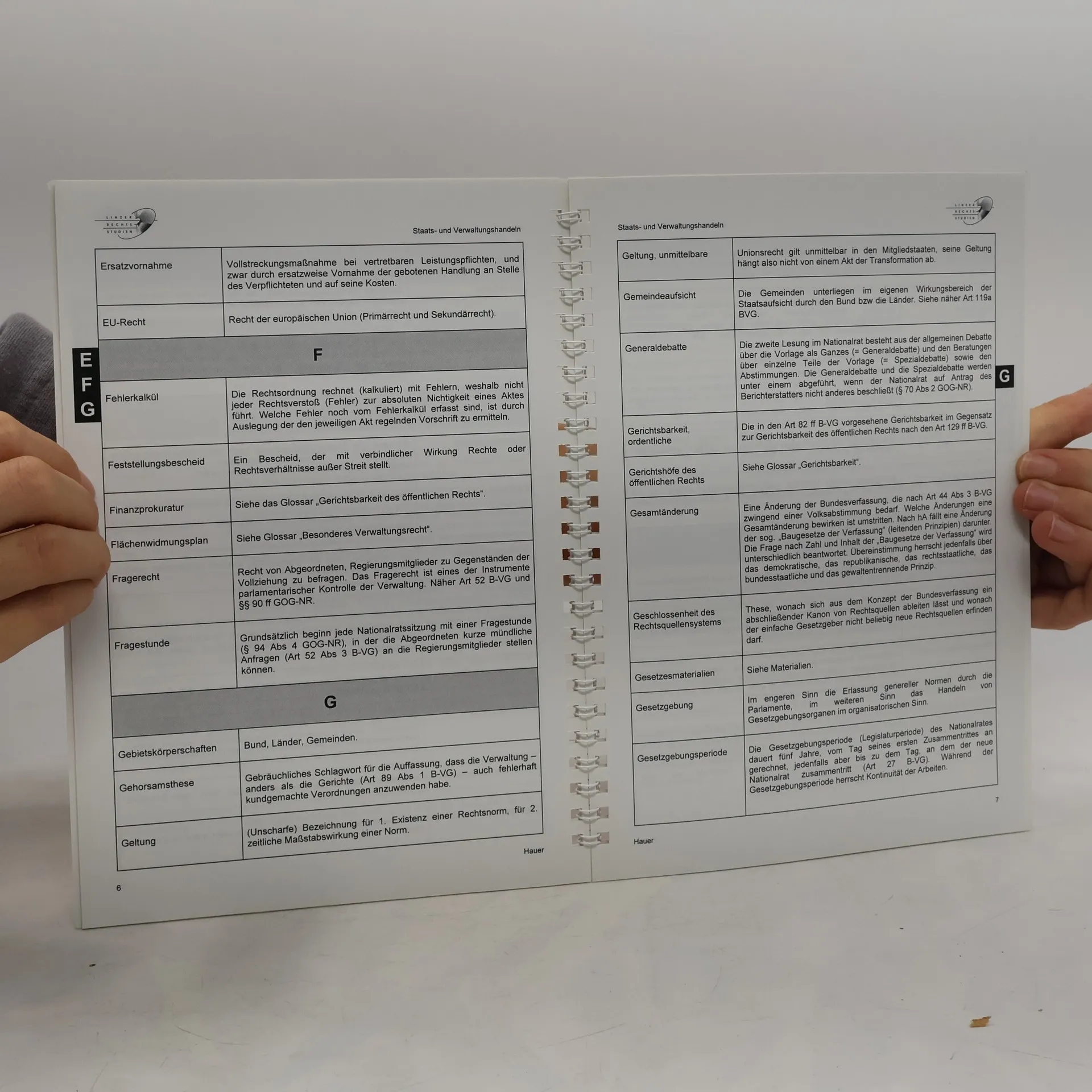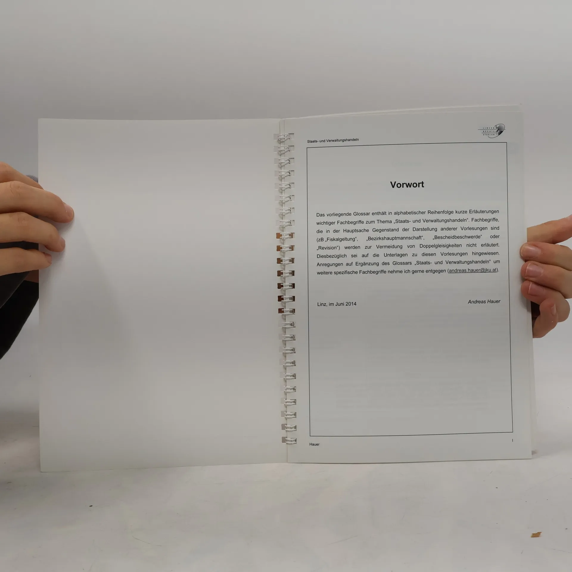 Der Studienplan für das Diplomstudium der Rechtswissenschaften an der Johannes Kepler Universität Linz beinhaltet im Grundstudium des zweiten Studienabschnitts eine Vorlesung über „Staats- und Verwaltungshandeln“. Dieses Studienbuch dient als Studienbehelf zu dieser Lehrveranstaltung und bietet den Studierenden eine hilfreiche Unterlage zur Begleitung des Kurses und zur Prüfungsvorbereitung. Es wird bewusst auf umfangreiche Wiederholungen der relevanten verfassungs- und verwaltungsrechtlichen Normtexte verzichtet, die den Studierenden bereits in Form von Gesetzestextzusammenstellungen zur Verfügung stehen. Der Fokus liegt vielmehr auf der Herausstellung wichtiger Grundsätze und Zusammenhänge, die aus den Gesetzestexten nicht unmittelbar ersichtlich sind. Diese Inhalte sind nicht leicht durch einfaches Lesen oder Lernen der Gesetzestexte zu erfassen. Das Augenmerk wird auf die wesentlichen „springenden Punkte“ und Verbindungen gelegt, die für das Verständnis entscheidend sind, jedoch in den Normtexten oft nicht deutlich werden. Zudem wird das Verständnis für die Bedeutung und die Auswirkungen der besprochenen Regeln in der Praxis durch praktische Beispiele aus der Judikatur gefördert.