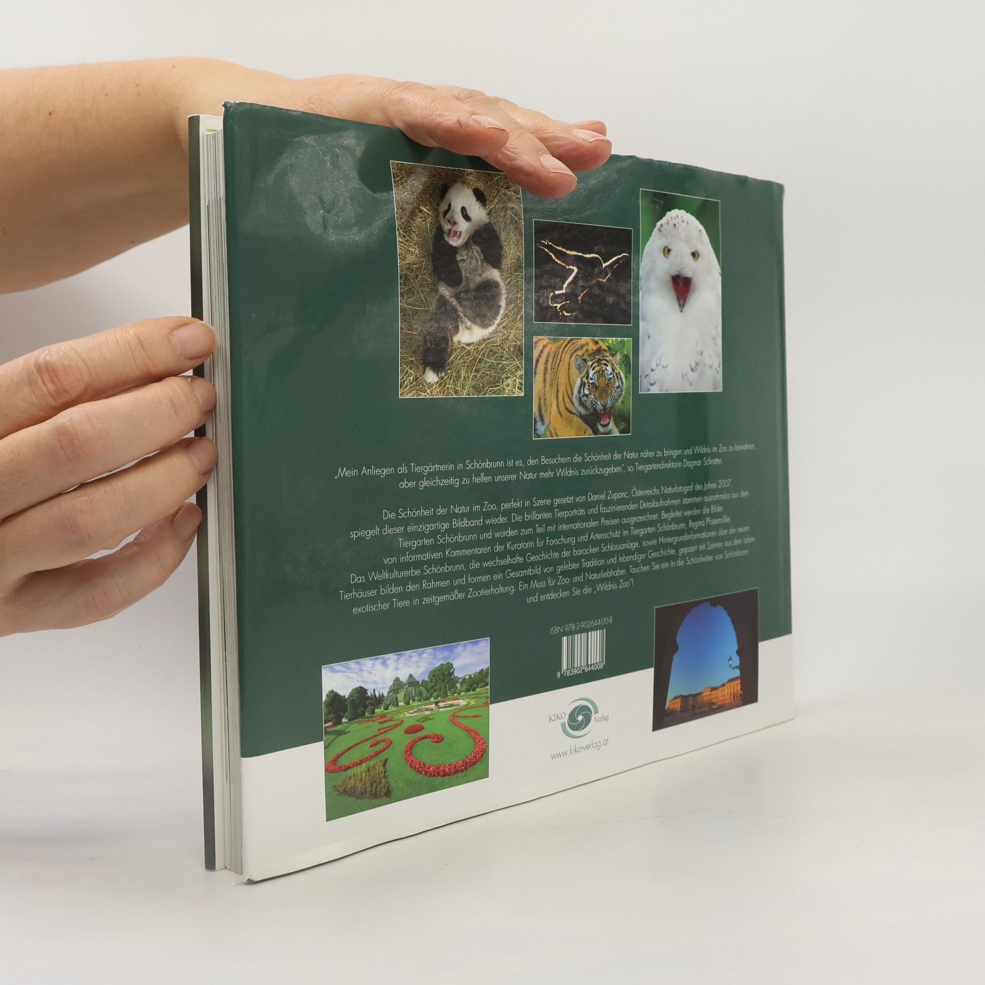„Mein Anliegen als Tiergärtnerin in Schönbrunn ist es, den Besuchern die Schönheit der Natur näher zu bringen und Wildnis im Zoo zu bewahren, aber gleichzeitig zu helfen unserer Natur mehr Wildnis zurückzugeben“, so Tiergartendirektorin Dagmar Schratter. Die Schönheit der Natur im Zoo, perfekt in Szene gesetzt von Daniel Zupanc, Österreichs Naturfotograf des Jahres 2007, spiegelt dieser einzigartige Bildband wieder. Die brillanten Tierporträts und faszinierenden Detailaufnahmen stammen ausnahmslos aus dem Tiergarten Schönbrunn und wurden zum Teil mit internationalen Preisen ausgezeichnet. Begleitet werden die Bilder von informativen Kommentaren der Kuratorin für Forschung und Artenschutz im Tiergarten Schönbrunn, Regina Pfistermüller. Das Weltkulturerbe Schönbrunn, die wechselhafte Geschichte der barocken Schlossanlage, sowie Hintergrundinformationen über die neuen Tierhäuser bilden den Rahmen und formen ein Gesamtbild von gelebter Tradition und lebendiger Geschichte, gepaart mit Szenen aus dem Leben exotischer Tiere in zeitgemäßer Zootierhaltung. Ein Muss für Zoo- und Naturliebhaber. Tauchen Sie ein in die Schönheiten von Schönbrunn und entdecken Sie die „Wildnis Zoo“!