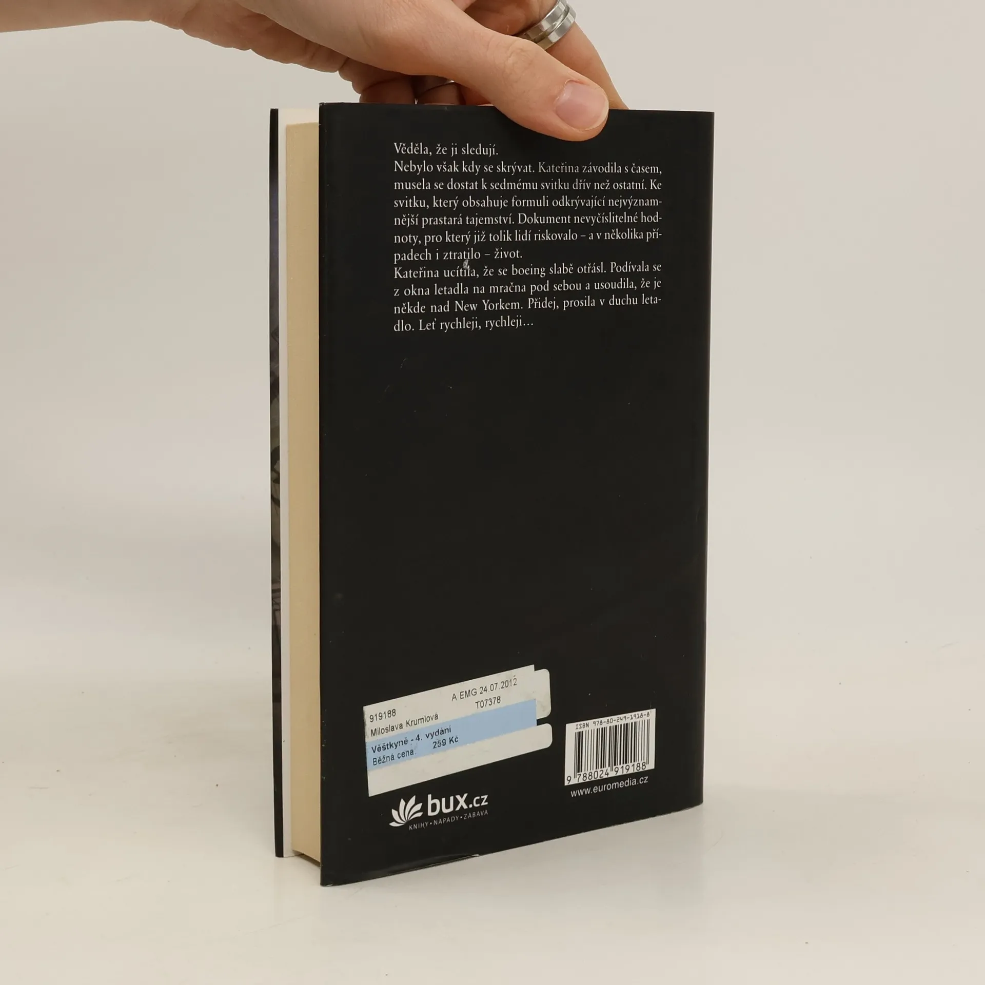 Bestseller oblíbené autorky skvěle kombinuje historické skutečnosti s napětím, záhadami a exotikou. Do konce tisíciletí zbývá rok, ale všeobecně je mylně očekáván jakýsi historický zlom, příchod nového Mesiáše, či snad konec světa. Na Sinaji jsou nalezeny starobylé svitky dokazující, že prvním apoštolem byla žena. Mezi politiky, v církvi i mezi sběrateli nastane rozruch. Celá planeta pořádá štvanici na archeoložku, která se šesti svitky v ruce hledá nejdůležitější svitek sedmý. Pronásledovatelé se neštítí žádného zločinu, k dispozici mají veškerou techniku. Na doktorku Kateřinu jsou nasazeni honicí psi internetu...