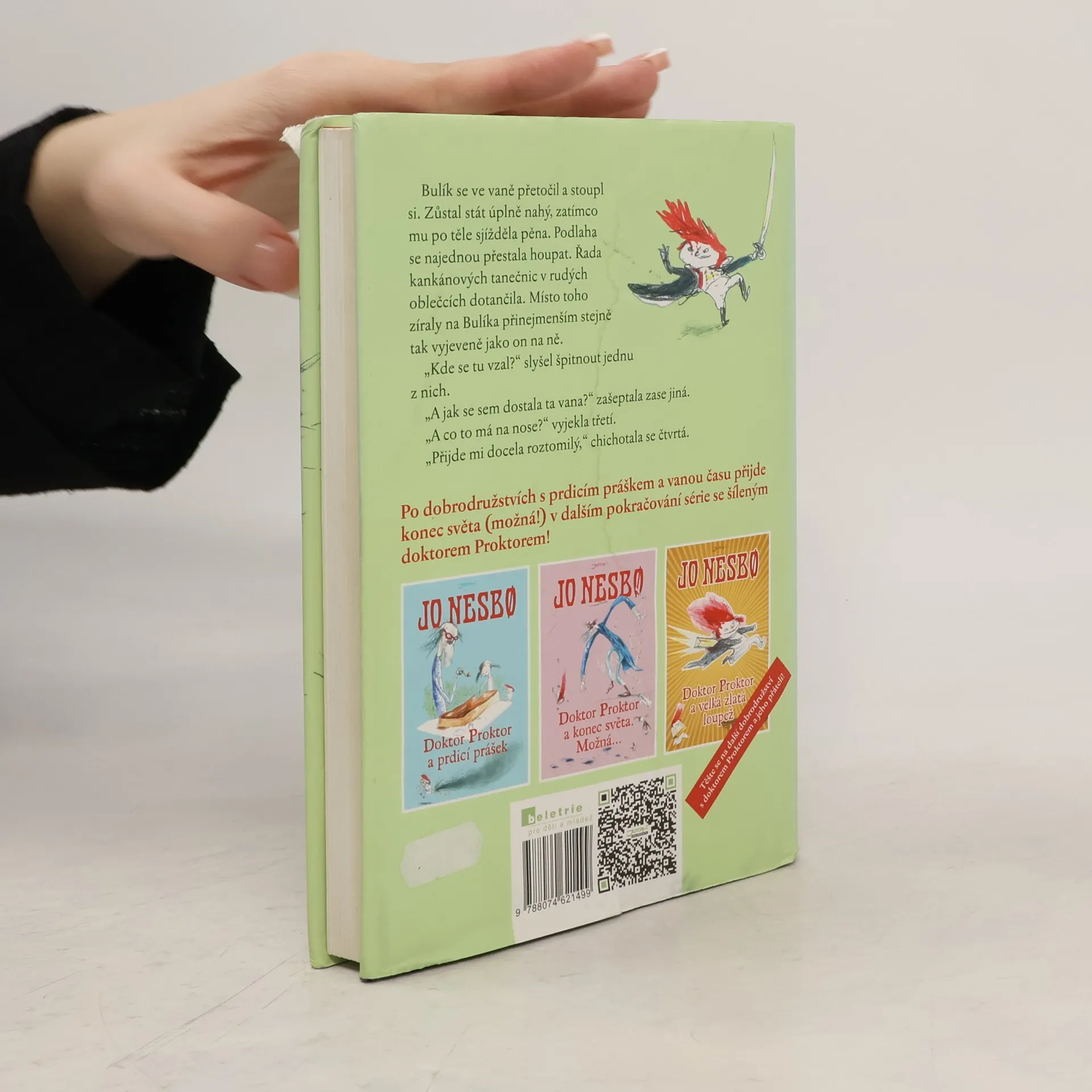 Zběsilá jízda časem v zábavném a napínavém pokračování o doktoru Proktorovi. Doktor Proktor se vydává do Paříže, aby znovu našel svou dávnou lásku, Julietu Margarínovou. V poštovní schránce Lízy Pedersenové v Dělové ulici se jednoho dne objeví zvláštní pohlednice. Je od doktora Proktora. Líze a Bulíkovi se nakonec podaří vzkaz rozluštit a zjišťují, že doktor Proktor se bez jejich pomoci nemůže dostat nazpět z minulosti. Proč je ale jeho zpráva šifrovaná? Hrozí mu nějaké nebezpečí? Doktorovi věrní přátelé se brzy ocitají v Paříži, kde potkávají Julietu. Tyto bývalé hrdličky se musely před téměř čtyřiceti lety rozdělit za velmi dramatických okolností a doktor Proktor nyní vyrazil za pomoci svého starého vynálezu, vany času, do minulosti, aby změnil chod tehdejších událostí. Nepodařilo mu však vrátit do přítomnosti a jediné, co vyplavalo z vany, u které na něj Julieta čekala, byla pohlednice adresovaná Líze. Nezbývá tedy nic jiného, než aby Líza s Bulíkem podnikli svou životní koupel a vyrazili do minulosti na pomoc doktoru Proktorovi. První dětská knížka Jo Nesba sklidila nadšené kritiky. Připravte se na zběsilou jízdu časem v tomhle zábavném a napínavém pokračování o doktoru Proktorovi...