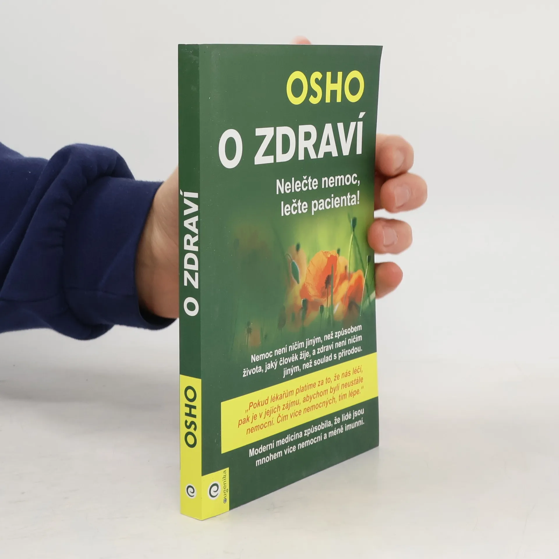 Tato kniha se zaměřuje na možnosti, jak v případě zdravotních potíží nalézt úlevu tím, že změníme své mentální nastavení, ponoříme se do stavu meditace či relaxace a podobně. Dnes se už čím dál víc akceptuje, že náš tělesný stav je neoddělitelný od stavu psychického a že naše myšlení zásadně ovlivňuje naše zdraví. Zároveň Osho neoblomně tvrdí, že nejhlubší nitro, nejhlubší podstatu člověka nelze dosáhnout materiálními nebo chemickými prostředky. Toto jsou témata, jež se zde probírají: Co je to vlastně zdraví? Být vyléčený znamená být úplný. Alternativní léčebné metody. Úloha léčitele. Léčivý dotek. Meditace a psychiatrie. Stres a vysoký tlak. Deprese. Strava a zdraví; diety a hubnutí; půst (je zajímavé, že Osho byl proti půstům). Bolest. Spánek. Stárnutí. Umírání a smrt - co je přirozená smrt, jak umřít důstojně. Osho se originálně vyjadřuje i k takovým praktikám moderní medicíny a vědy, jako je umělé oplodnění nebo transplantace orgánů. Léčiva moc smíchu a humoru. Je to kniha plná vynikajících postřehů, rad a krásných myšlenek, které vám jistě dopomohou k celistvějšímu pohledu na sebe a své zdraví, ale i další věci v životě, a tudíž k většímu štěstí.