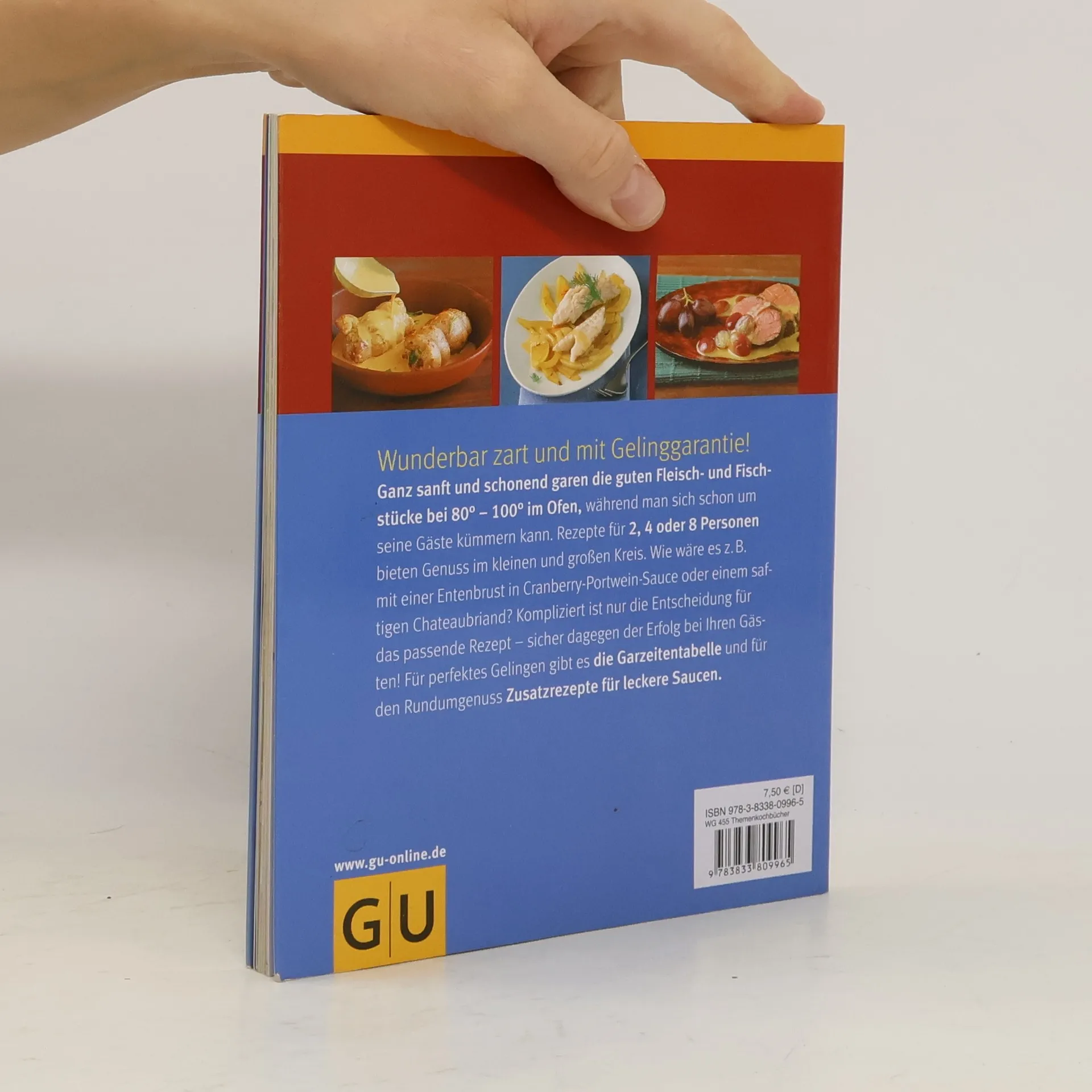 Wunderbar zarte Fleischgerichte mit Gelinggarantie sind kein Geheimnis mehr. Nach dem Bestseller Zart und saftig bei 80° legt Erfolgsautorin Margit Proebst nach. Über 30 köstliche Fleischgerichte und dieses Mal sogar auch Fisch, die ganz einfach und auf den Punkt gelingen. Niedrigtemperaturgaren ist der Schlüssel zum Küchenerfolg! Ganz sanft und schonend garen die guten Stücke wie von alleine im Ofen, während man sich schon um seine Gäste kümmern kann. Rezepte für 2, 4 oder auch 8 Personen garantieren Genuss im kleinen und großen Kreis. Wie wäre z. B. ein Dinner for two mit Entenbrust in Cranberry-Portwein-Sauce, Seeteufel mit Orangen-Mandel-Sauce als Familienessen oder ein saftiges Chateaubriand beim großen Dinner. Kompliziert ist nur die Entscheidung für das passende Rezept - sicher dagegen der Erfolg bei ihren Gästen! Für perfektes Gelingen gibt es zusätzlich die Garzeitentabelle und für den perfekten Rundumgenuss Zusatzrezepte für leckere Saucen.