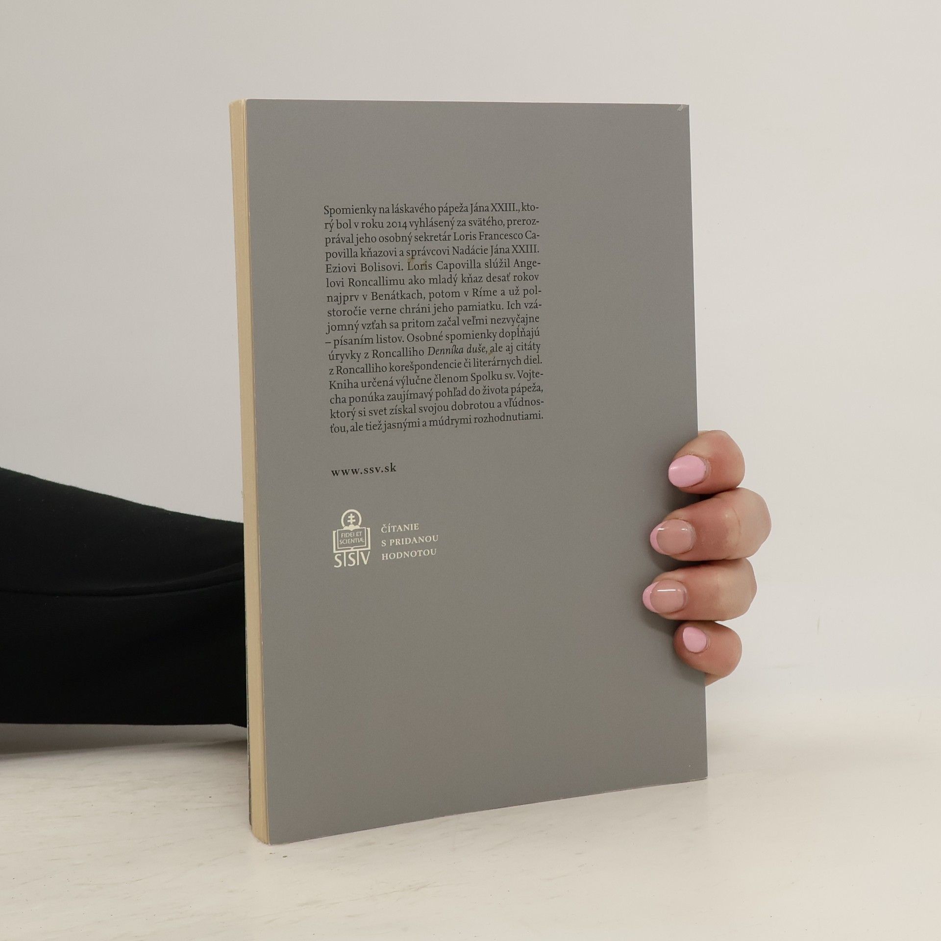 Spomienky na láskavého pápeža Jána XXIII., ktorý bol v roku 2014 vyhlásený za svätého, prerozprával jeho osobný sekretár Loris Francesco Capovilla kňazovi a správcovi nadácie Jána XXIII. Eziovi Bollisovi. Loris Capovilla slúžil Angelovi Roncallimu ako mladý kňaz desať rokov najprv v Benátkach, potom v Ríme a vždy verne chránil jeho pamiatku. Ich vzájomný vzťah sa pritom začal veľmi nezvyčajne – písaním listov. Osobné spomienky sekretára doplňujú úryvky z Roncalliho Denníka duše, ale aj citáty z Roncalliho korešpondencie či literárnych diel. Kniha ponúka zaujímavý pohľad do života pápeža, ktorý si svet získal svojou dobrotou a vľúdnosťou, ale aj jasnými a múdrymi rozhodnutiami.