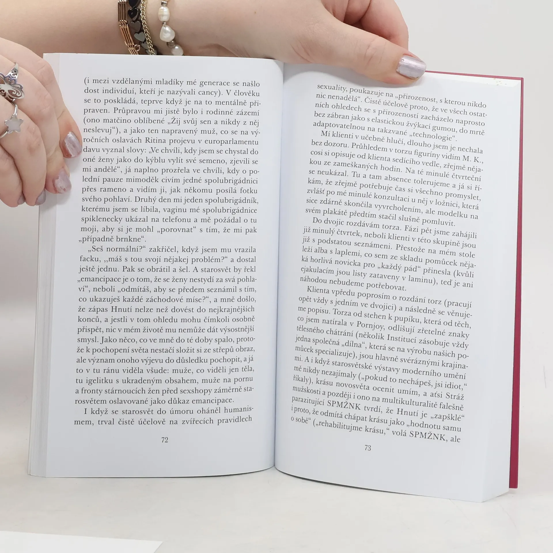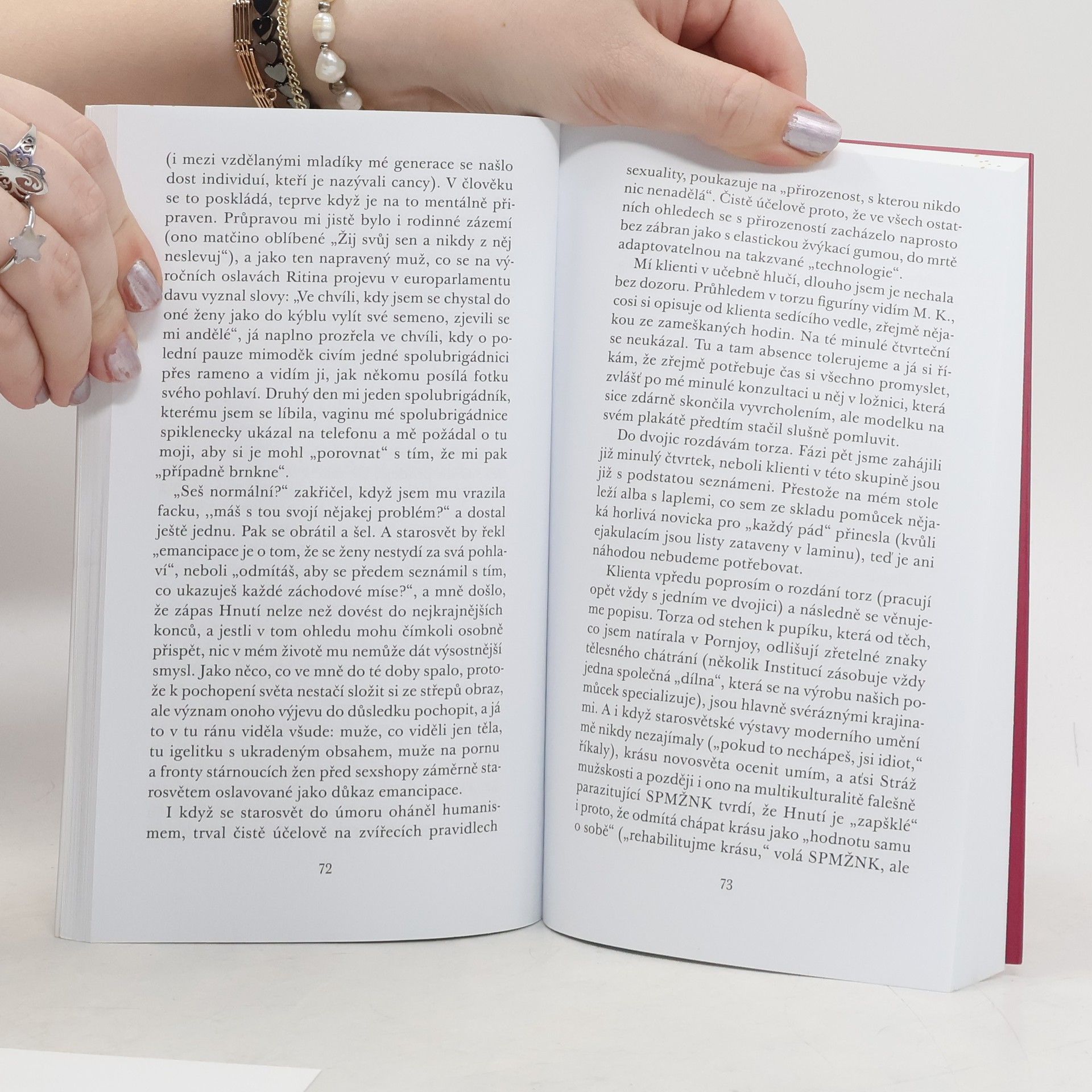 Ve svém posledním, tentokrát dystopickém románu Stručné dějiny Hnutí nás Petra Hůlová prostřednictvím vypravěčky Věry, lektorky převýchovné instituce Hnutí, nesmlouvavě a se suverénním tahem uvádí do světa blízké budoucnosti. Ten je podřízen ideologii radikálního humanismu, který lektorka Věra ve své Instituci uvádí do praxe. Věřin popis života v Instituci je zároveň popisem praktik a vzestupu Hnutí, které je odhodláno jednou provždy skoncovat s pohledem na ženu jako na tělo. Hodnota ženy je věcí jejích vnitřních, nikoli vnějších kvalit. Sexuální přitažlivost založená na fyzické atraktivitě a mládí je neetická. Klienty převýchovných Institucí se stávají muži, kteří to nechápou. Zapálená vypravěčka nenechává nikoho na pochybách, že ve jménu tohoto dobra nejsou na překážku ani zcela mimořádné oběti.
