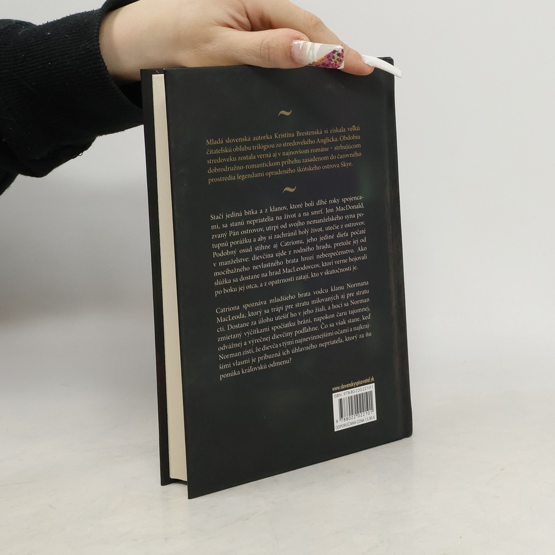 Mladá slovenská autorka Kristína Brestenská si získala veľkú čitateľskú obľubu trilógiou zo stredovekého Anglicka. Obdobiu stredoveku zostala verná aj v najnovšom románe - strhujúcom dobrodružno-romantickom príbehu zasadenom do čarovného prostredia legendami opradeného škótskeho ostrova Skye. Stačí jediná bitka a z klanov, ktoré boli dlhé roky spojencami, sa stanú nepriatelia na život a na smrť. Jon MacDonald, zvaný Pán ostrovov, utrpí od svojho nemanželského syna potupnú porážku a aby si zachránil holý život, utečie z ostrovov. Podobný osud stihne aj Catrionu, jeho jediné dieťa počaté v manželstve: dievčina ujde z rodného hradu, pretože jej od mocibažného nevlastného brata hrozí nebezpečenstvo. Ako slúžka sa dostane na hrad MacLeodovcov, ktorí verne bojovali po boku jej otca, a z opatrnosti zatají, kto v skutočnosti je. Catriona spoznáva mladšieho brata vodcu klanu Normana MacLeoda, ktorý sa trápi pre stratu milovaných aj pre stratu cti. Dostane za úlohu utešiť ho v jeho žiali, a hoci sa Norman zmietaný výčitkami spočiatku bráni, napokon čaru tajomnej, odvážnej a výrečnej dievčiny podľahne. Čo sa však stane, keď Norman zistí, že dievča s tými najnevinnejšími očami a najkrajšími vlasmi je príbuzná ich úhlavného nepriateľa, ktorý za ňu ponúka kráľovskú odmenu?
