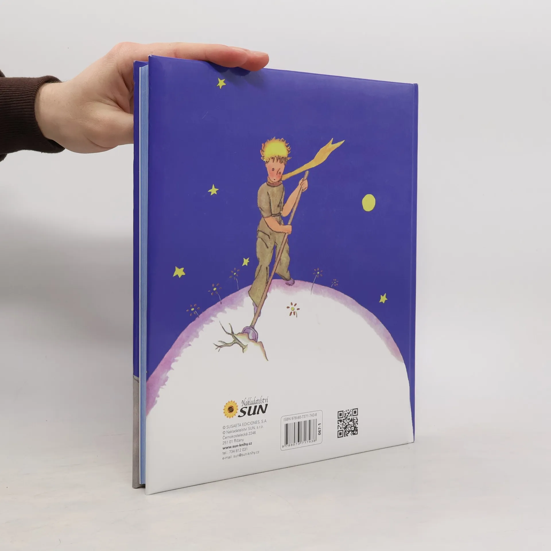 Havárie letadla donutí vypravěče příběhu, který je zároveň autorovým alter egem, k přistání uprostřed pouště. Má zásobu pitné vody sotva na týden a proto musí opravit motor pokud možno co nejrychleji. Prvního dne ulehne unaven po celodenní práci a za úsvitu, stále tisíc kilometrů od nejbližšího lidského obydlí, ho probudí zvláštní hlásek, který ho žádá, aby nakreslil beránka... Alegorická pohádka pro děti i pro dospělé, kteří přemýšlí o ztraceném mládí a hledají životní moudrost, patří mezi nejvýznamnější díla svého druhu. Luxusní vatovaná vazba, velká písmena.